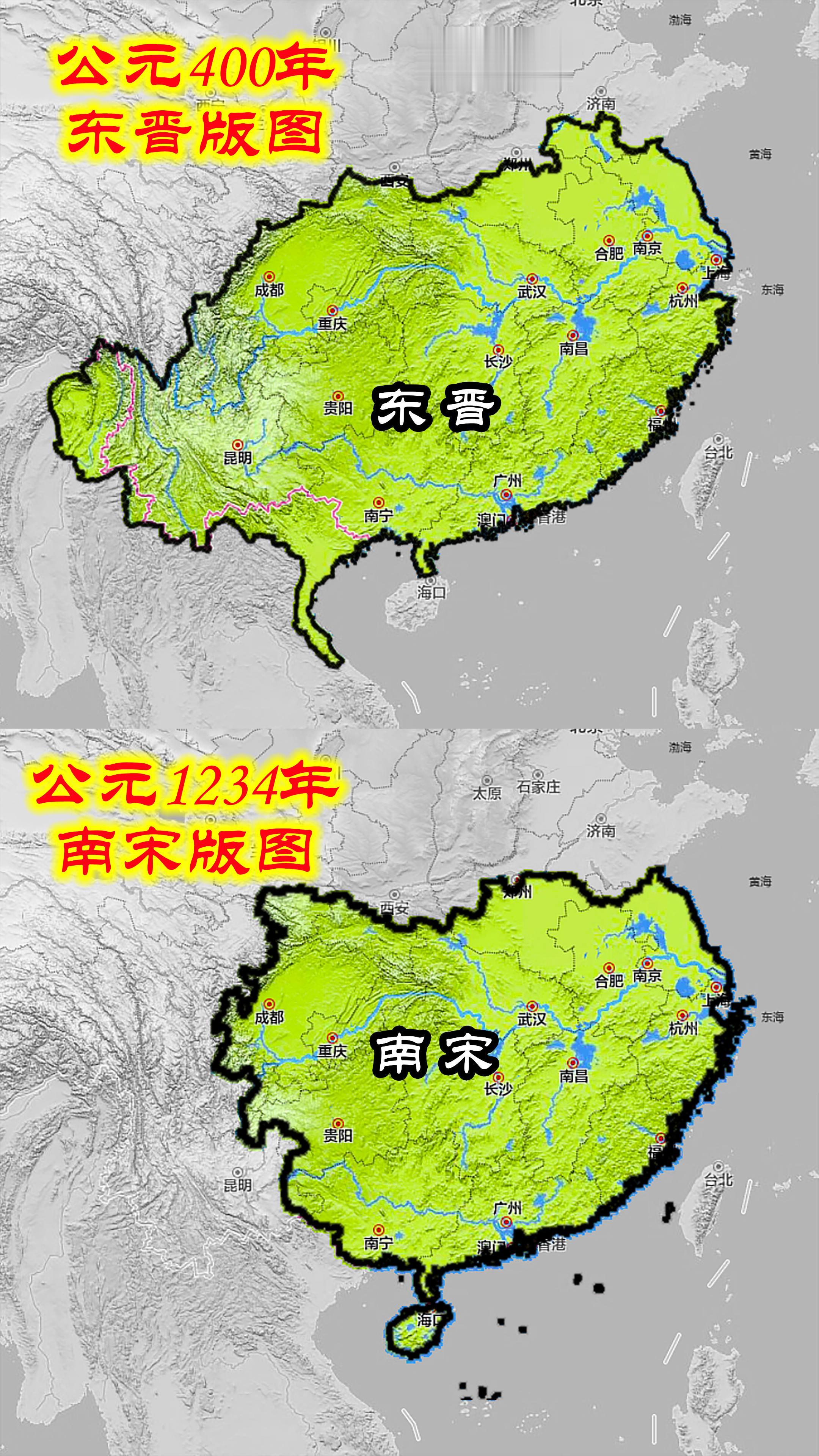 东晋与南宋版图对比。