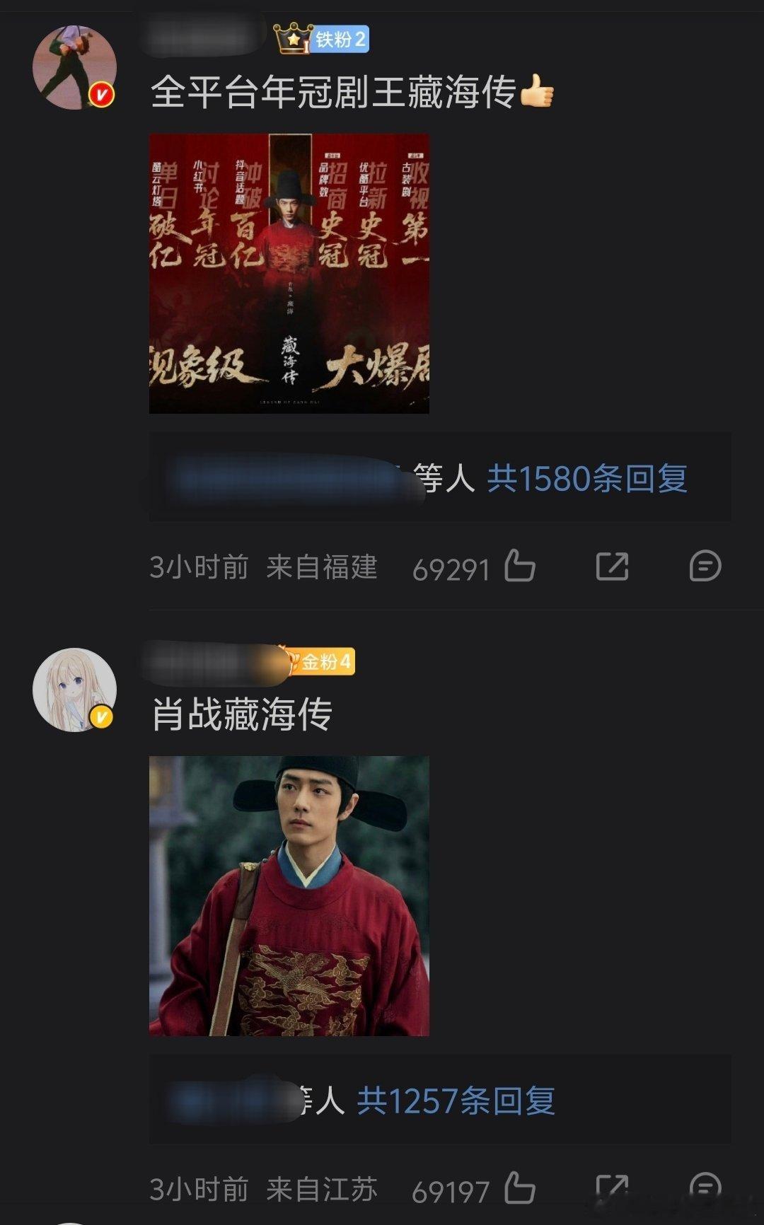 👖的2025年好剧,评论前排全是肖战《藏海传》和成毅《长安二十四计》,已经300w👍🏻了。