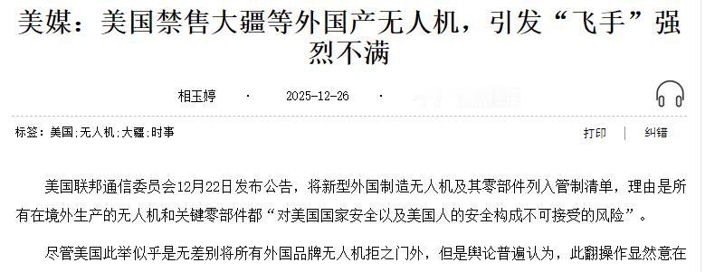 中国不欢迎他,“中国坚决不要特朗普访华”,对于这些出尔反尔的人,坚决不要给他们脸。 韩国见面的话还没凉,手还没松,特朗普的脸就又变了,这些年各国的脸皮都挺厚的,法国总统访华后变脸,德国卖了车子变脸,英国搞了贸易变脸,好像“变脸”已经形成了一种国际新风尚。 12月22日,美国突然宣布全面禁止外国制造的无人机及组件在美销售,将大疆等中国无人机厂商直接列入所谓“安全威胁”黑名单。 这种言而无信、反复无常的行径,彻底暴露了美国霸权的本质,也让所有中国人看清:这样的特朗普,中国坚决不欢迎,更不该给他访华的机会。 美方还凭空捏造罪名,有共和党议员甚至荒谬地声称,中方会利用无人机技术“绘制美国每一寸土地”,这种毫无根据的污蔑,纯粹是为其打压中国企业找借口。 美方炒作“安全威胁”完全是欲加之罪何患无辞,大疆作为全球民用无人机领域的领军企业,产品的安全性和可靠性早就被全球市场和众多权威第三方机构验证过。 在农业植保、消防救援、自然资源保护等多个关键领域,大疆无人机都发挥着不可替代的作用,为提升生产效率、保障公共安全做出了实实在在的贡献。 美方自己也承认,这次禁令并不影响之前已经购买的无人机正常使用,这就更说明所谓的“安全威胁”只是借口,真实目的就是要打压中国企业,维护美国自身的产业霸权。 面对美方的无理打压,大疆在23日回应称对这一决定表示遗憾,强调此举既限制了美国消费者和商业用户的选择自由,也损害了公平竞争的市场原则。 中国驻美使馆也明确表态,坚决反对美国滥用“国家安全”概念,这种做法只会扰乱正常的经贸交流,破坏全球产业链和供应链的稳定。 美方的行为,不仅伤害了中国企业的利益,也让国际社会再次看清其出尔反尔的一贯作风。 说起来,特朗普政府的反复无常早就不是第一次了。早在中美经贸磋商期间,美方就曾多次出尔反尔。 先是与中方达成共识,承诺不打贸易战,可短短十天后就推翻共识,宣布推进加征关税计划;之后又多次在谈判中得寸进尺,采取极限施压手段,违背两国元首达成的共识,导致磋商多次受挫。 现在,特朗普政府又在中美关系上故技重施,刚在韩国释放合作信号,转头就对中国企业下手。这种毫无信誉的行为,怎么可能赢得中国人民的信任? 国家之间的交往,最基本的前提就是相互尊重、言而有信。特朗普政府把出尔反尔当成外交手段,把打压中国企业当成政治筹码,这种霸权逻辑在中国面前注定行不通。 我们一向重视中美关系,但重视不等于纵容。对于这种反复无常、毫无诚信的人,我们没必要客气,更不该给脸。所谓的特朗普访华,现在看来完全没有必要。 访华的前提是尊重和诚信,而特朗普政府恰恰缺少这两样东西。与其让这样言而无信的人来中国,不如把精力放在维护真正公平公正的国际秩序上。