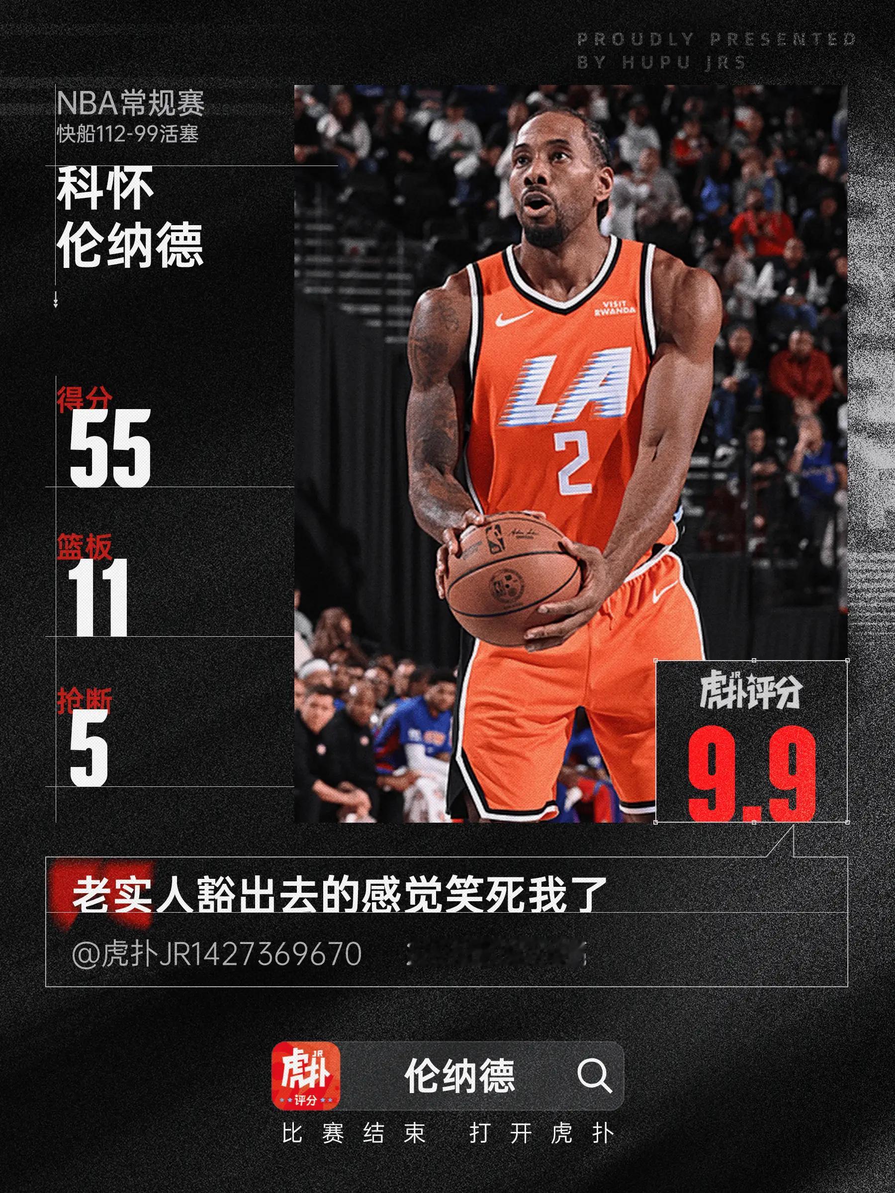 伦纳德26中17狂砍55分,生涯首个50+&追平快船队史最高得分今日NBA常规赛,快船112-99战胜活塞。全场比赛,伦纳德26中17,三分10中5爆砍55分11板5断3帽,得到生涯首个50+且追平快船队史最高得分纪录。伦纳德55分活塞vs快船