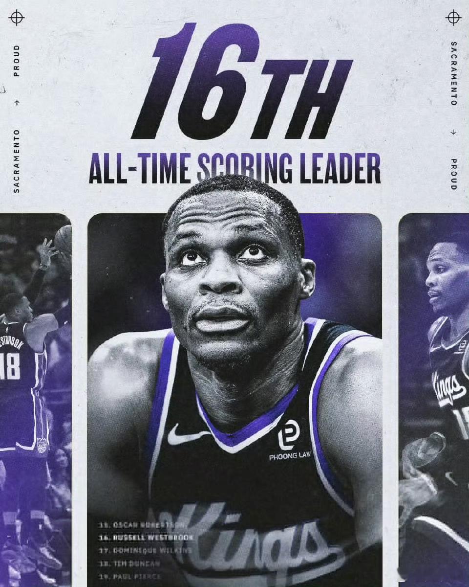 威少超越威尔金斯上升至NBA历史得分榜第16位湖人vs国王