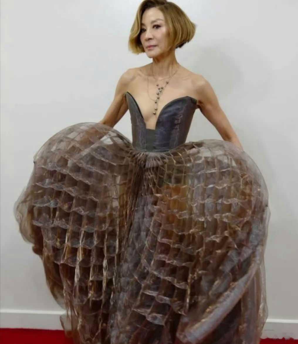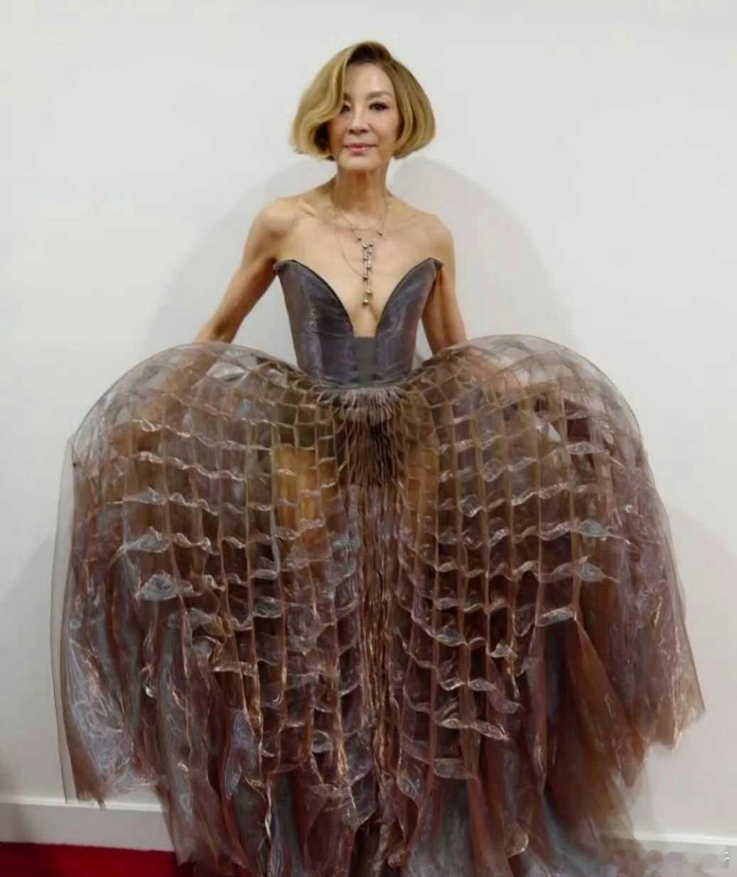 杨紫琼这裙子每次看到都很有趣,有人说像羊肚菌,其实看起来好像蜂巢,杨紫琼这衣服很亮眼,但是她自己的状态更让人羡慕,63岁得女人还是身材纤细,没有老年人的痕迹。