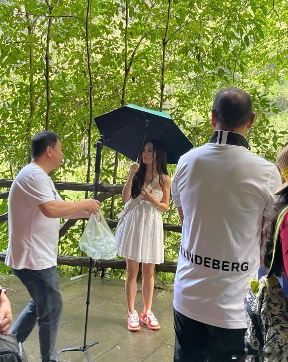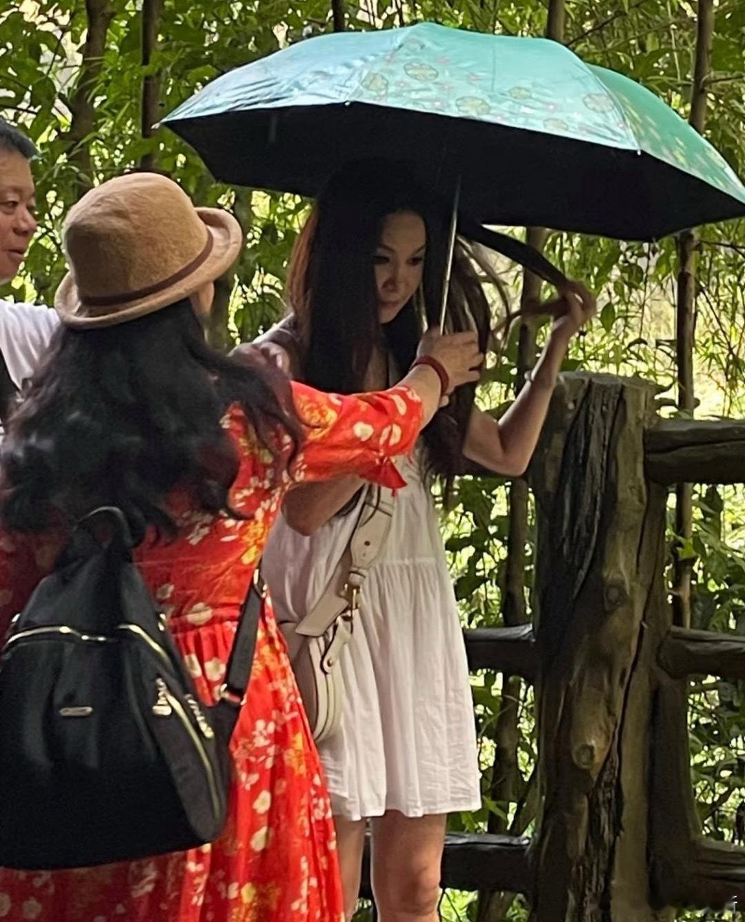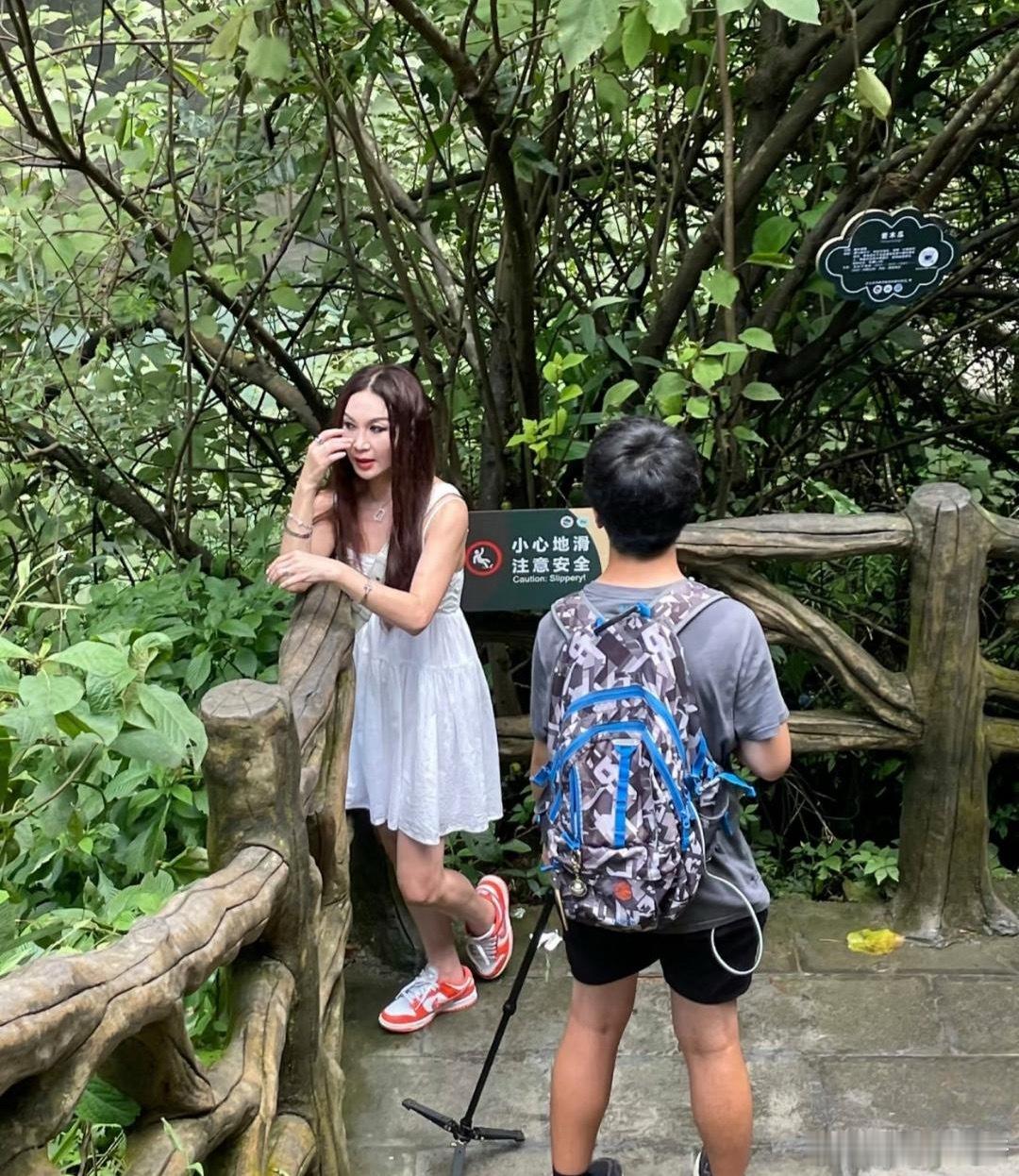 59岁温碧霞和养子一起到贵州旅游,她穿着白色裙子,整个人看起来苍老了好多,皮肤好多褶皱,年龄感太重了