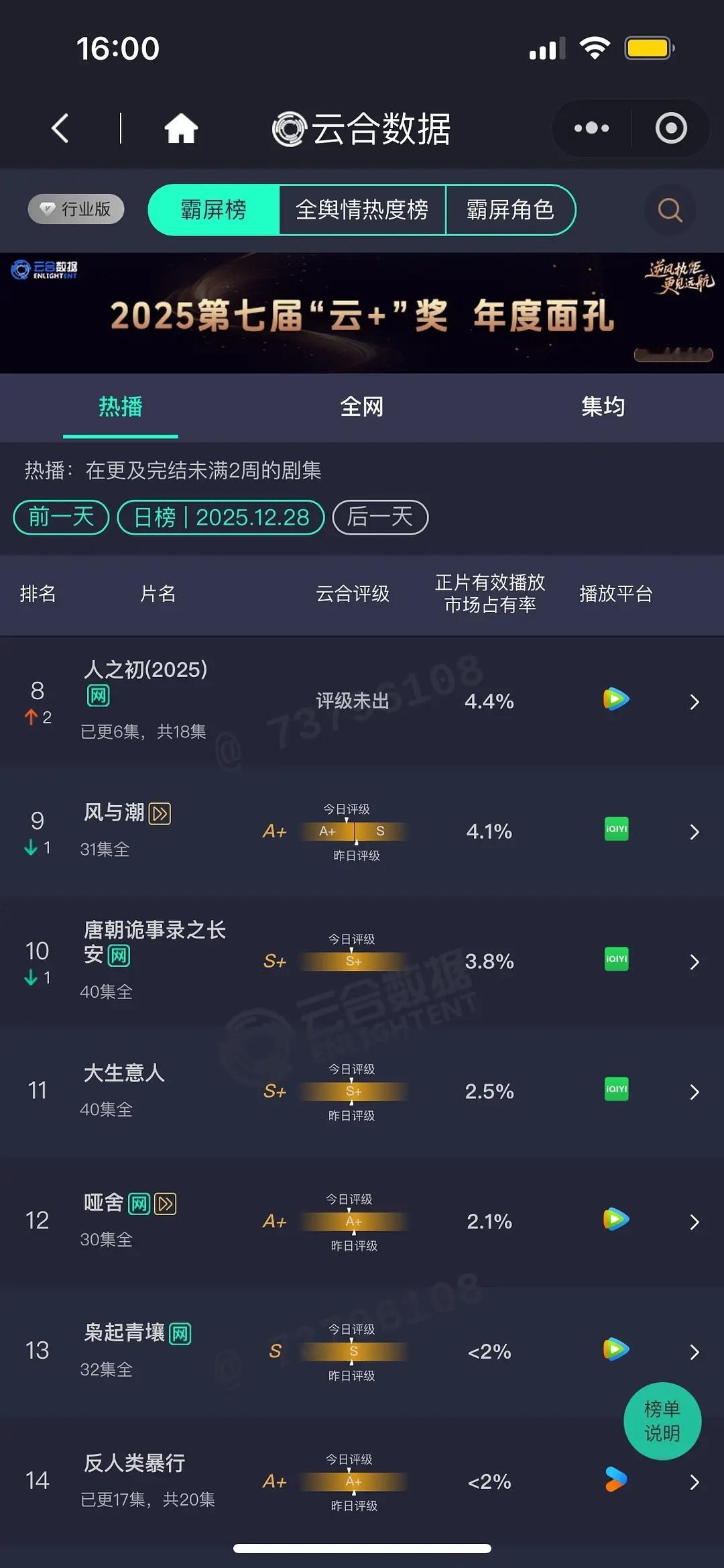 大盘2.1老舅 17.5% 3600+罚罪2 13.6% 2800+骄阳似我 13% 2700+逍遥 次日11.8% 2500+ 翻1.7倍人之初 次日4.4% 900+ 翻1.4倍 血扑抬走