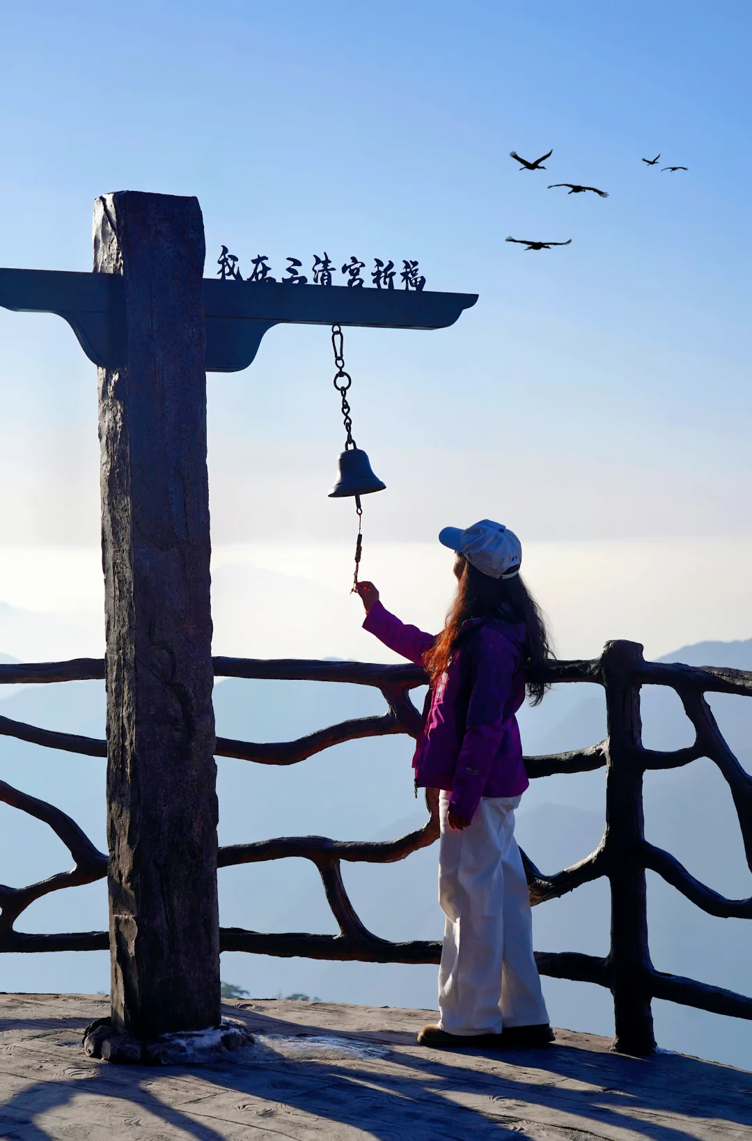 🔹玉京峰:立于峰顶,如置身于天地之间。脚下云海翻涌,吞没千峰;远处巨蟒出山、女神颔首…沐于金光之中,磅礴如上古神话现场。