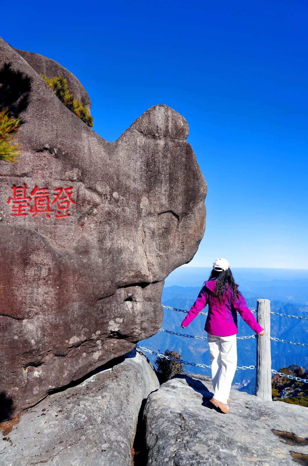 港首索道出站后右拐走“平步青云之路”,15分钟缓坡平路到达观景台,再走5分钟经过涵星池到达三清宫。原路返回到涵星池,往精华景点方向走,沿途景色开阔,可以看到玉兔石、伟晶岩、猴王献宝…留好体力挑战玉京峰。游玩后折返港首索道下山。