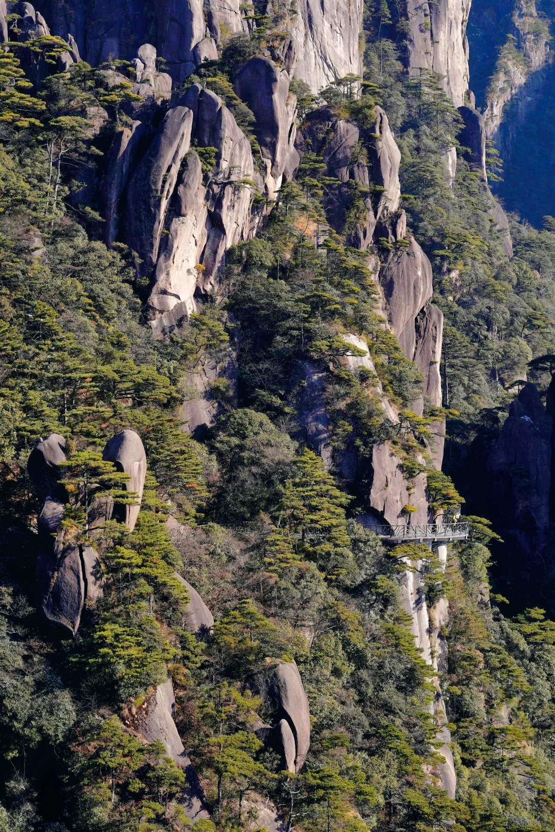 🔹西海岸栈道:行走在高空悬崖绝壁之上,开阔的视野里奇峰怪石在云海间化作流动的剪影。耳畔是风穿过松林与深谷的合鸣,每一步都像在云端漫步,壮阔而空灵。