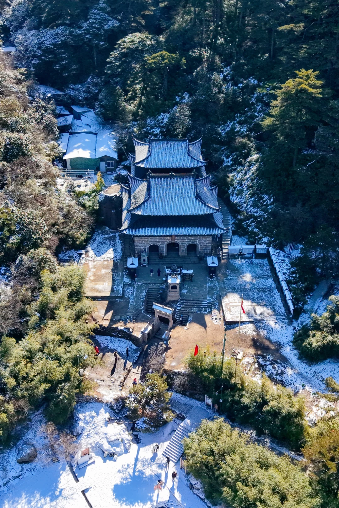 🔹三清宫:一场雪后,朱檐玄瓦覆上了素白。香炉的余温化开薄雪,石阶旁的石雕静默如初,松枝承载着新雪,道宫更显清寂出世,仿佛时间在此安然入定。