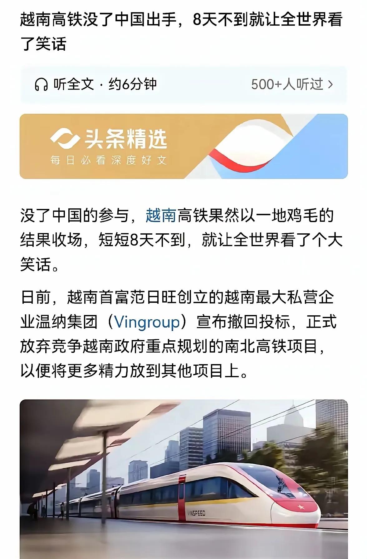 越南高铁这档子事儿!越南急着上马高铁,看着是奔着搞经济去的,实则藏着温柔陷阱,咱中国可得擦亮眼睛,别稀里糊涂踩进去! 这条河内到胡志明市的高铁,一旦贯通,物流效率会飙升,越南的区域影响力也会跟着涨。可别被“对华合作示范工程”的说法迷惑,背后藏着小心思——高铁成了,越南腰杆子硬了,说不定就成了外人“借越制华”的筹码! 咱中国拒绝帮建,可不是抠门,是战略眼光长远!短期靠技术和资金赚点钱,长远看却是养出一个经济更强、战略更灵活的越南,这妥妥的引狼入室,风险远比这点收益大得多! 中越关系哪是算经济账那么简单?历史纠葛、领土争议、安全考量,桩桩件件都复杂。越南在南海问题上老试探,区域合作里又摇摆不定,咱必须守住底线——该帮的忙不含糊,该划的红线绝不让步! 越南的戏演得再足,咱的战略清醒也不能跑偏!高铁能南北穿梭,咱的战略定力得稳如泰山。咱中国是区域定盘星,可不能因小利乱了阵脚,让越界的小动作得逞!