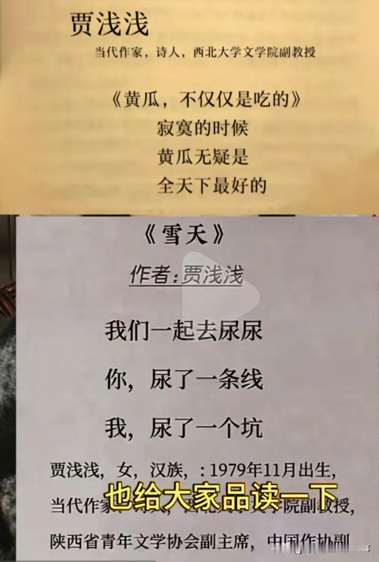 这才是当代诗人,中国唯一获得一等奖的诗,很多网友说我真的白读了那么多年书。 前些天著名现代诗人贾××一首诗获得全国一等奖,很多网友不服,都自由发挥作诗。白天是白天的白,黑夜是黑夜的黑,前两句应该幼儿园的孩子都知道吧。 更有形象地是沼泽地的蚊子声音如雷声,到底有那么大声吗,形容的是不是太过分了,通篇也看不出来啥意思,只有最后一句,原来是准备怀孕生孩子。诗人不愧是诗人,自己准备怀孕还要告诉大家关键这首诗获得的全国一等奖。