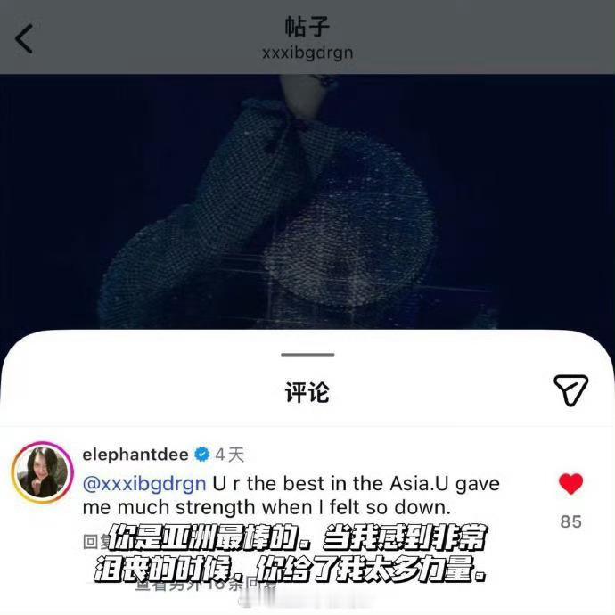 小S感谢权志龙 小S在权志龙ins下留言:“你不知道,你给了我多大力量来面对这个世界,太感谢你了。”“当我感到沮丧时,你给了我太多力量。”