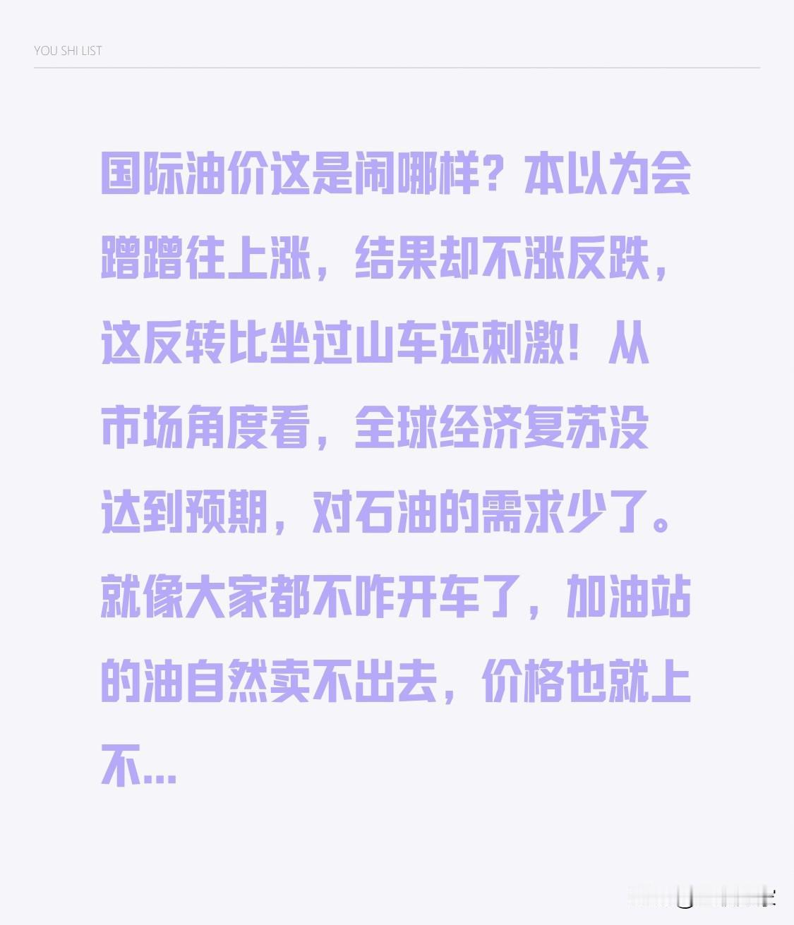国际油价这是闹哪样?本以为会蹭蹭往上涨,结果却不涨反跌,这反转比坐过山车还刺激!