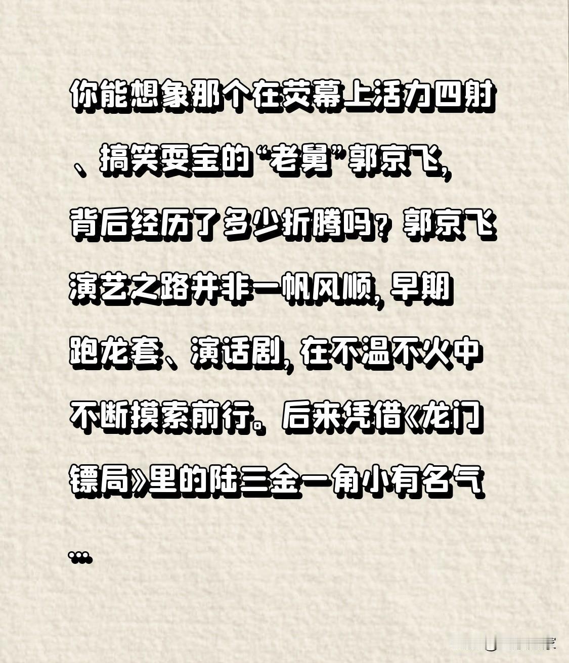你能想象那个在荧幕上活力四射、搞笑耍宝的“老舅”郭京飞,背后经历了多少折腾吗?郭