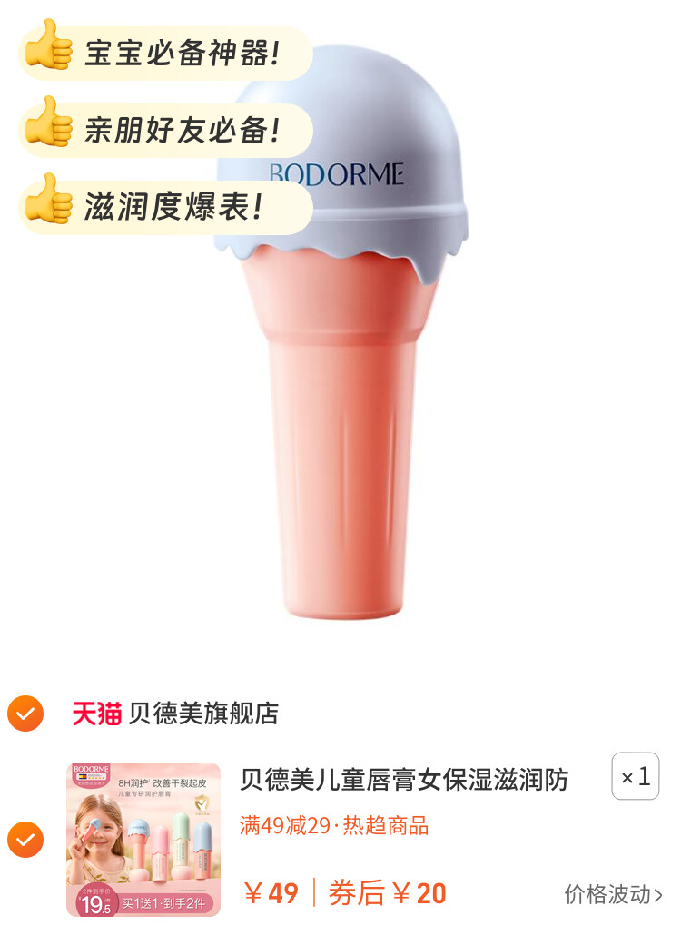 【🔥20】贝德美儿童唇膏天然植物果脂 + 保湿滋润!!改善干裂起皮!不含6大有害化学成分!!温和舒适,宝宝使用更安全!!冰淇淋童趣造型,让宝宝爱上涂抹!!