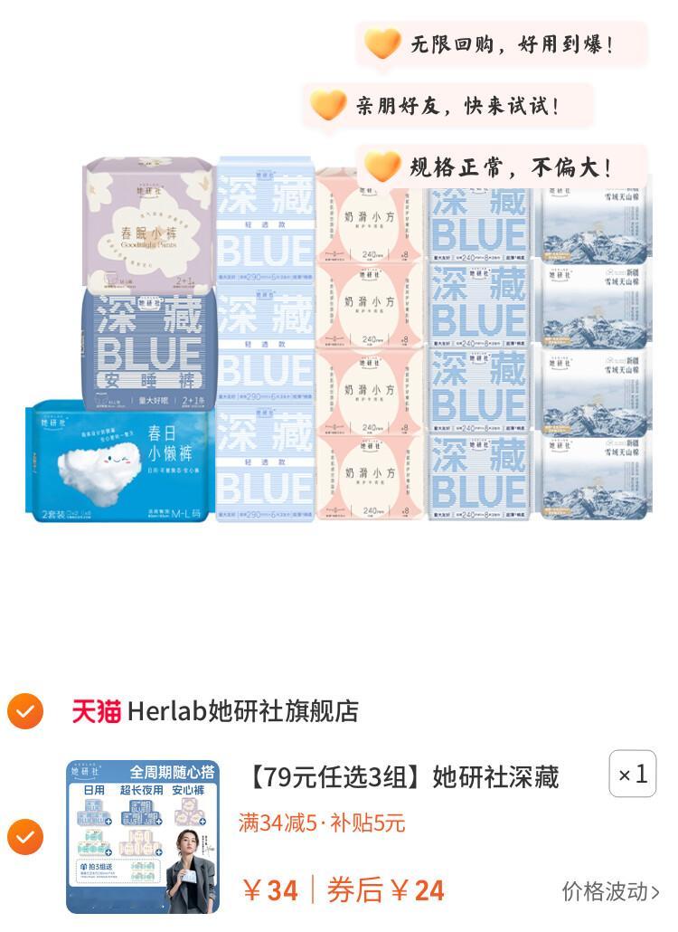 【79元任选3组】她研社深藏Blue卫生巾春眠小裤安睡裤干爽防漏春眠小裤 + 安睡裤!!干爽防漏!超.舒适体验!夜用无忧!!整晚安心睡眠!!