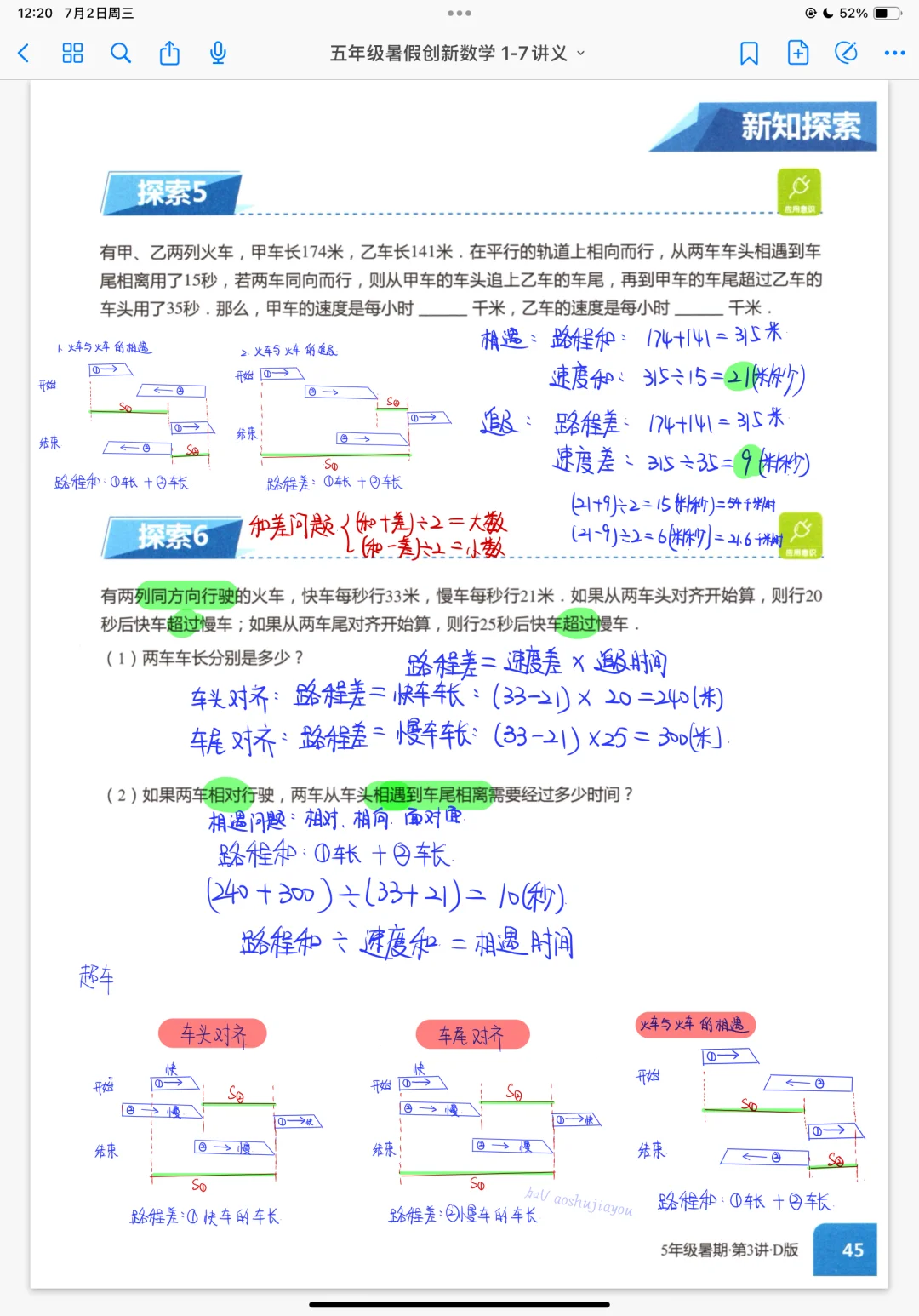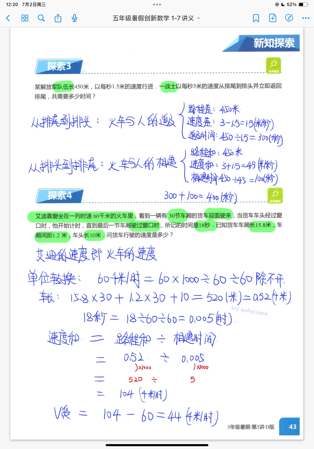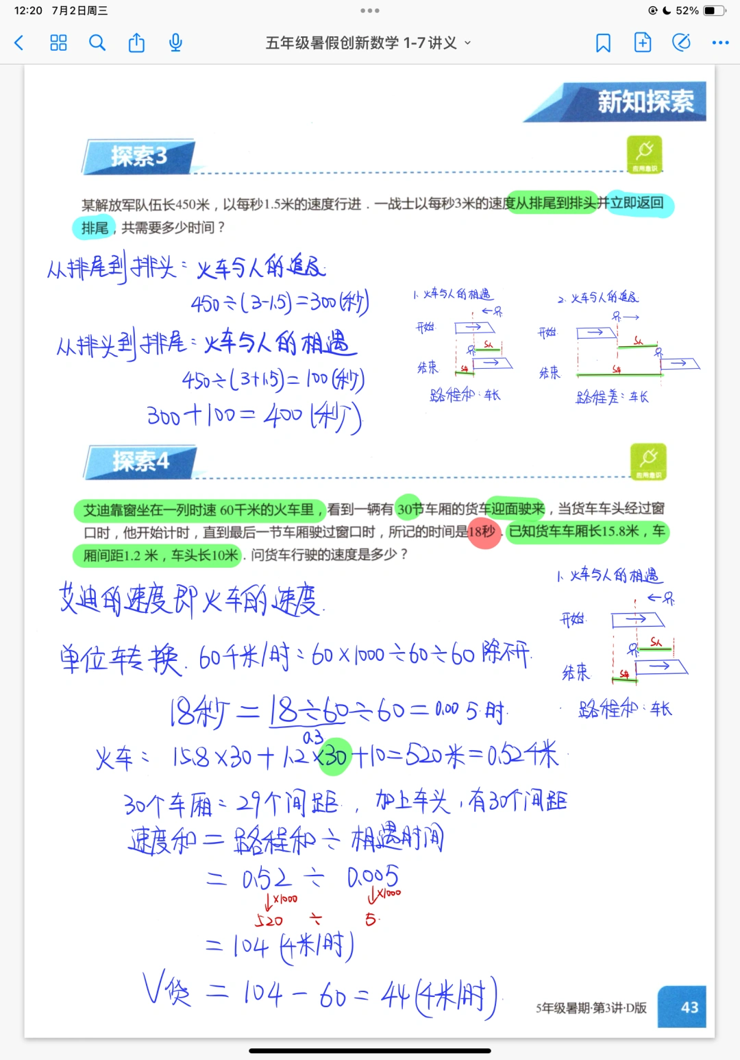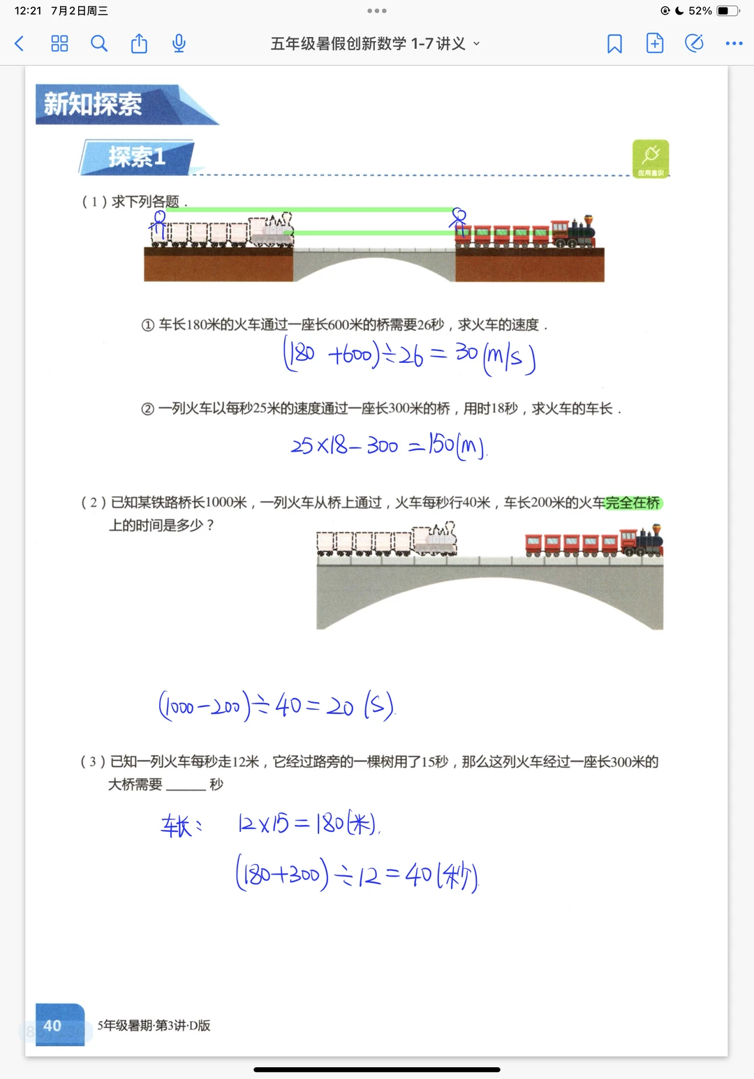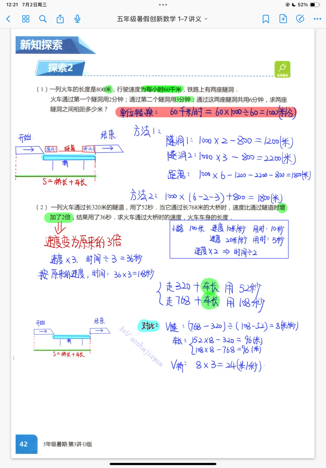 五年级暑假奥数创新班《火车过桥》课堂笔记