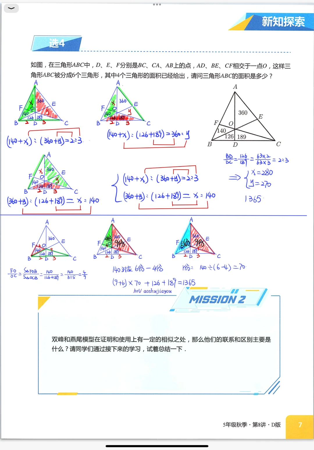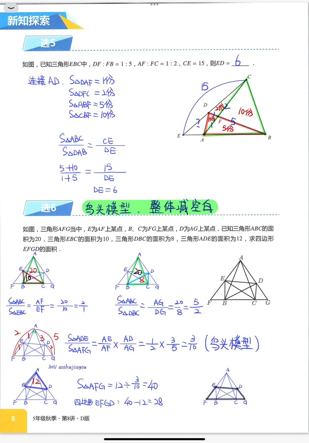 《燕尾模型》五年级秋季创新班奥数课堂笔记