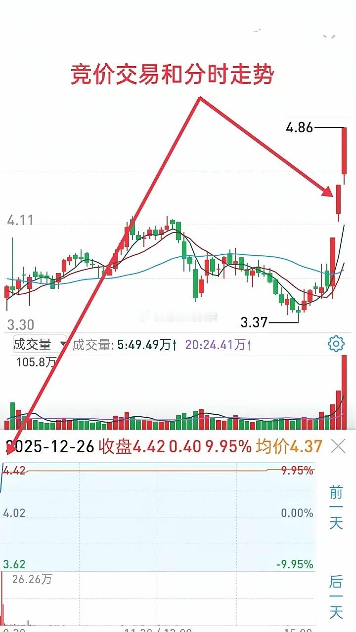竞价交易是短线技术层面的第一手信息,我们绝大多数人由于满仓操作,很容易错过或忽略这一重要环节。真正的高手,绝对不会错过早盘竞价这15分钟,从中选择强势股或判定出当日走势,做出决策,或买入最好的个股,或交易卖出最理想的价格。我们做短线一定要掌握竞价规则,看懂红绿线和最后竞价的意义。看一个个股案例,做一进二。首先从昨日涨停股中选出该股,热门股刚走出首板,后期走势能否延续,通过集合竞价判定。下左图,9:20之前5分钟,显示红线多,买盘占主导,上方未匹配的量,下方已匹配,表明做多情绪浓厚。真实的情况要看9:20之后,股价仍力挺涨停价,尽管绿线卖盘占上峰,但下方匹配量不少,随着时间后移,卖单增加股价下移至开盘价,但仍在高位以4个点左右价格,且成交量很大开盘。这里,我们不能仅仅看走势,9:20分后涨停价仍有挂单,主力可能较大,而且开盘价处高位承接力非常强。但是,一定要看开盘后的走势,进一步确定。所以,9:30后重点观察,看做多强势能否延续。果然,开盘后强势上攻,抢筹特征,分时图分价和分时均线并为一线,量价匹配完美。攻势非常强。有实盘经验立即追买一半仓位,涨停挂单吃掉再进一半仓位。当然选股很重要,看右图,涨停突破生命线的个股,正处主升阶段。早盘竞价的意义除抓强势股外,可判定一只个股当日走势,追高买入次日竞价平开或低开,分歧明显,走弱的表现,有时需要调整策略,必要时及时止盈或止损,才为上策。仅供交流,点关点赞,看更多文章。