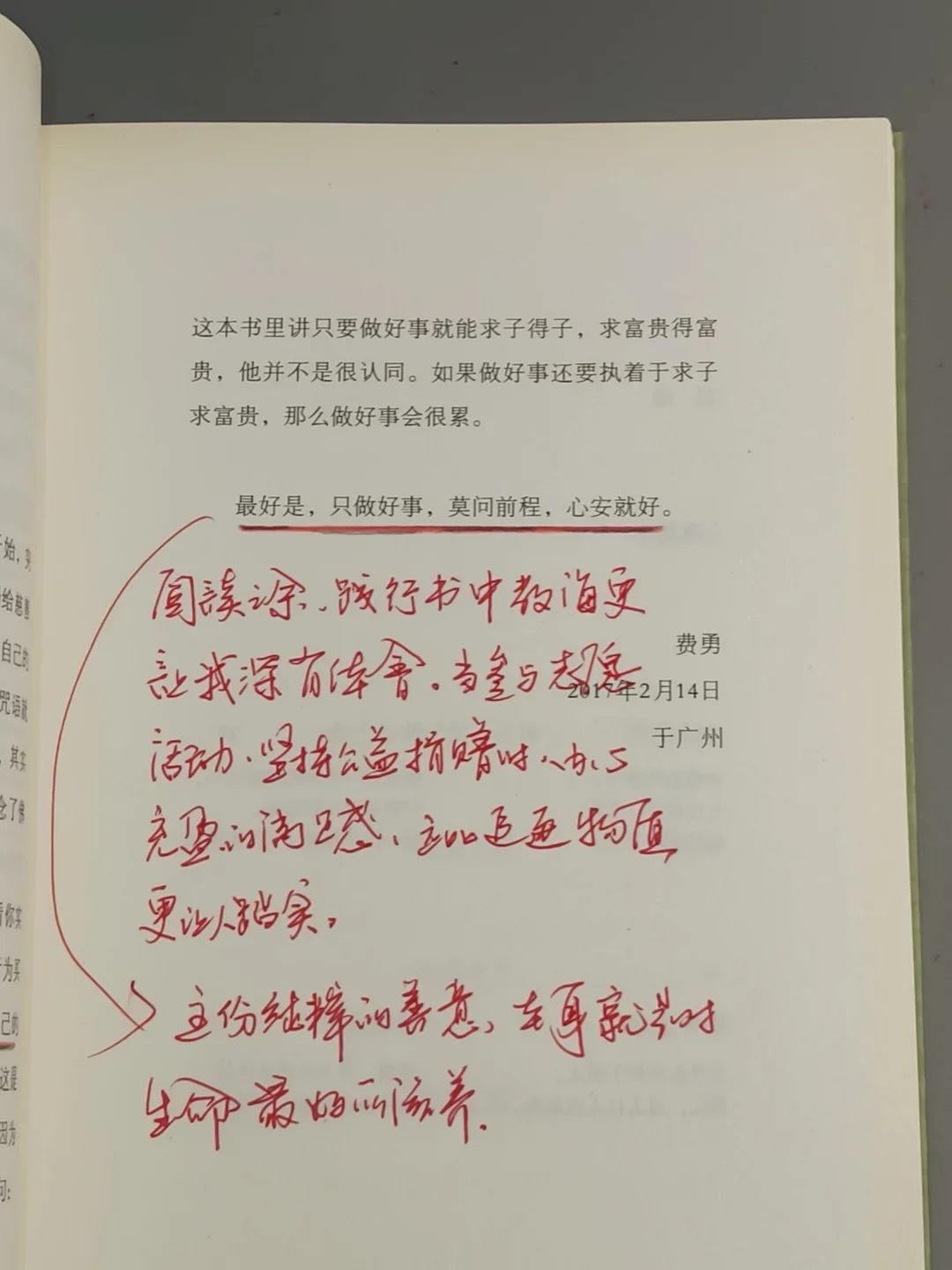 阅读之余,践行书中教诲更让我深有体会。当参与志愿活动、坚持公益捐赠时,内心充盈的满足感,远比追逐物质更让人踏实。正如费勇先生所言“只做好事,莫问前程,心安就好”,这份纯粹的善意,本身就是对生命蕞好的滋养。