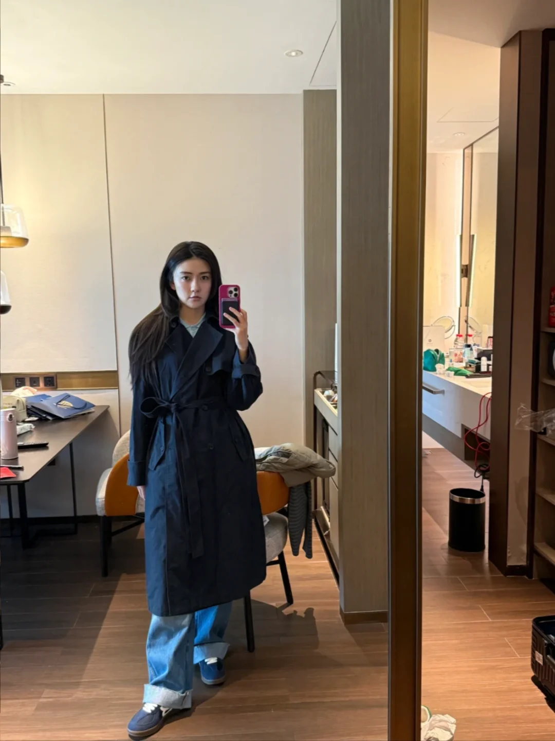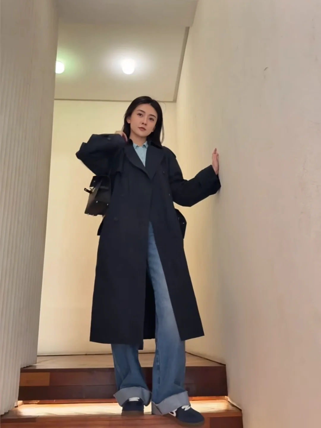 氧系派女神梁洁早春穿搭分享,真不是我说,梁洁真的会给到惊喜,这身休闲时髦穿搭赶紧学起来! 长款藏蓝色风衣➕阔腿牛仔裤➕同色系德训鞋,简约又大气,我看了一下,百元款德训鞋是我能get到的,穿搭公式有韩系女主气质呀!