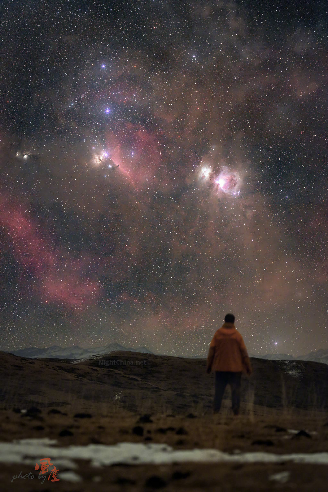 站在旷野,夜的苍穹徐徐展开她隐秘的卷轴。山影在夜色里凝成淡淡的轮廓,风掠过草甸,带来远处雪山的清冽,银河戴着她珍藏了一年的冬季宝石横亘天际,猎户座的星云象暗夜花朵般怒放,星空厚重而轻盈,荒蛮又温柔,广阔而细腻,遥远又触手可及。摄影师:一路风尘多,2025年12月14日摄于 四川 红原。佳能R6(改机)+ 佳能135L,ISO 12800,f/3.2,单张曝光20秒,天空部分多张叠加。关注Steed的星空 ,每日推送星空佳作。更多图片请见 夜空中国 :NightChina.net