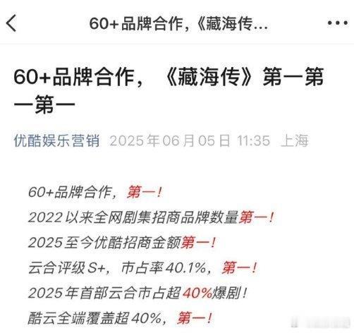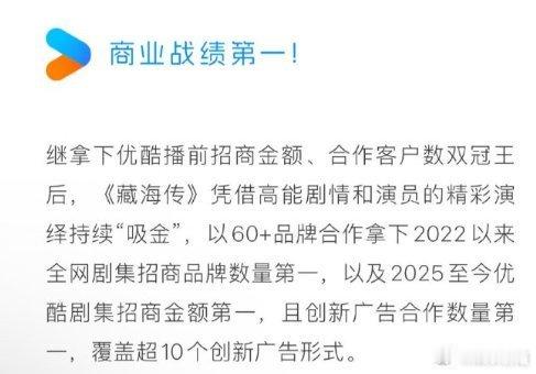 藏海传2025至今优酷招商金额第一肖战藏海传就是这么牛,恭喜肖战,恭喜藏海传!