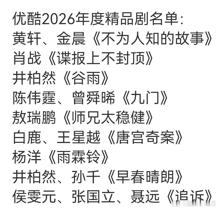 2026年优酷精品剧名单🆚腾讯最受期待剧集大家最期待哪一个?