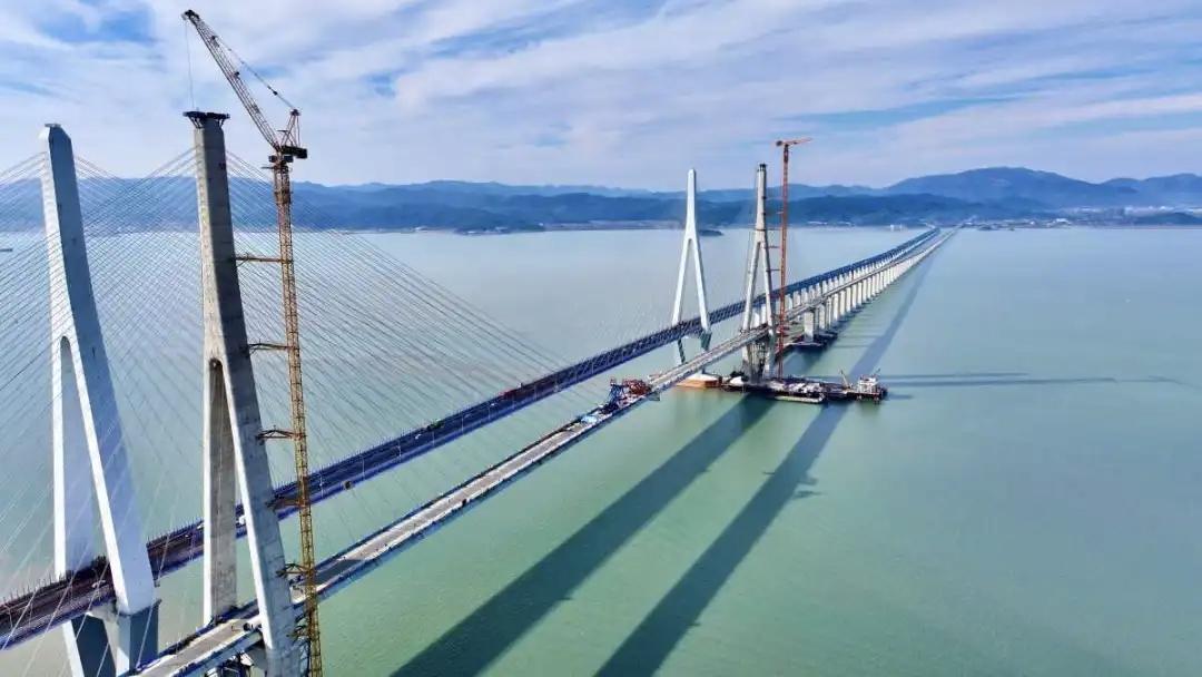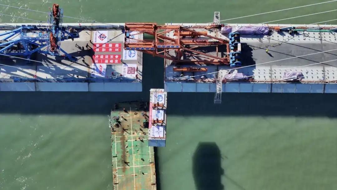 国内首座市域(郊)铁路跨海大桥——宁波市域铁路(宁波地铁12号线),象山港跨海大桥顺利合龙。在市域铁路象山港跨海大桥施工现场,随着项目经理的“起吊”令下,合龙段钢箱梁被缓缓提至空中,朝着桥面仅存的缺口平稳移动。 12月29日15:15,随着最后一片钢箱梁精准吊装到位,国内首座市域(郊)铁路跨海大桥——宁波市域铁路象山港跨海大桥顺利合龙,象山线正线实现“桥通”,为后续按期通车奠定基础。 从市轨道交通集团获悉,该桥全长8.276公里,是世界最大跨径无砟轨道铁路斜拉桥、国内紧邻既有桥最大跨径桥梁,横跨象山港,与原有的公路桥比肩而立。 来源:鄞州发布