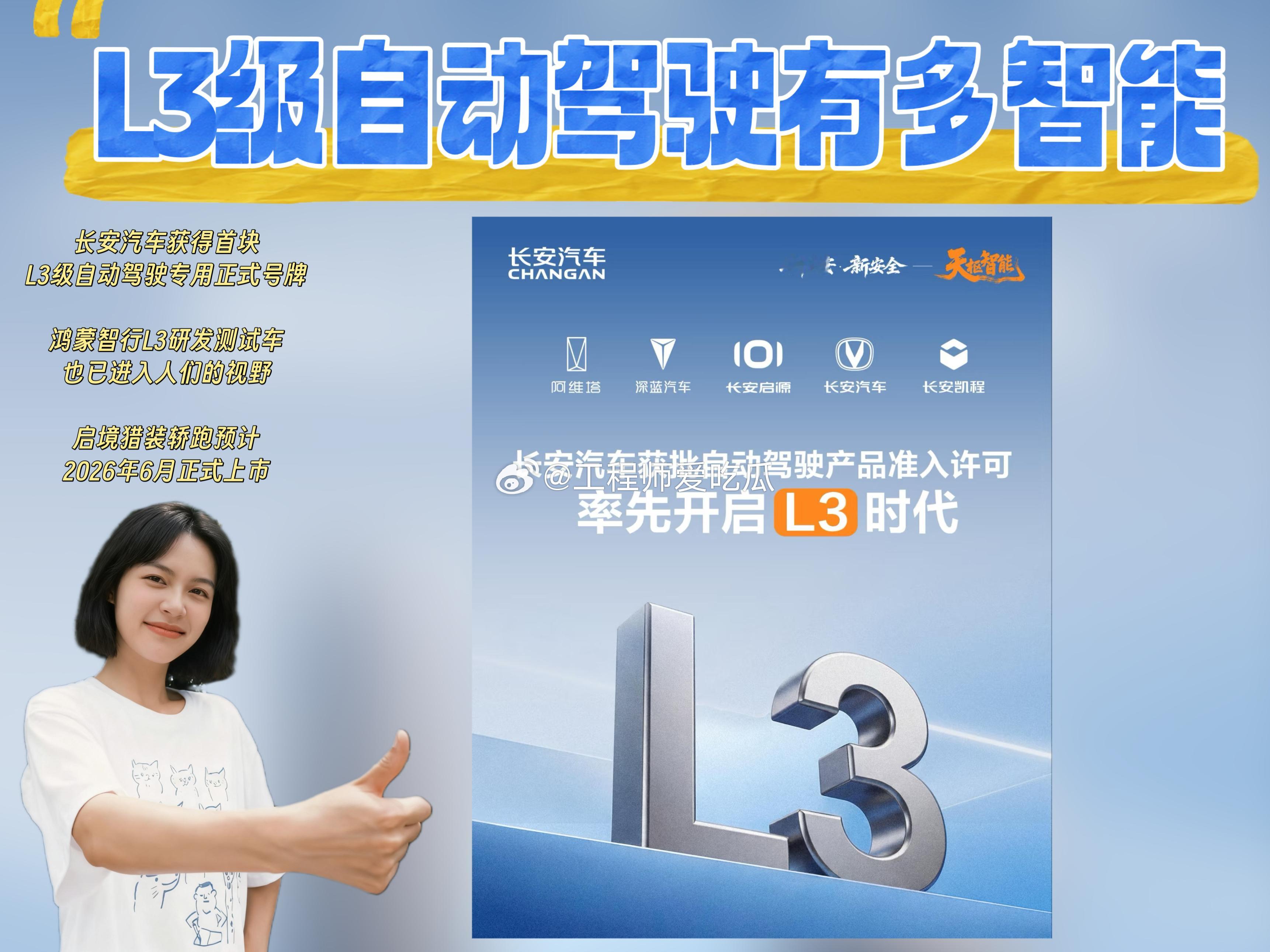 L3级自动驾驶有多智能汽场全开 朋友们,L3自动驾驶真的来了!我们从“紧握方向盘”到有条件“放手” 了。🚗✨当我还在为我的L2级小车能自动跟车而沾沾自喜时,全国首块L3级自动驾驶“正式身份证”已经挂上了长安汽车!这感觉,就像别人还在玩小灵通,5G手机突然开始发售了 📱➡️🚀12月20日,长安汽车拿到了那块写着 “渝AD0001Z” 的牌子,这可不是普通的车牌,这是国内第一块L3级自动驾驶的“合法上岗证”!几乎同时,华为鸿蒙智行的L3测试车也悄悄跑上了重庆、合肥的街头进行实测。👉到底啥是L3?和我的L2有啥不一样?🤔说实话,我之前也觉得L2和L3可能就差一点点。但研究完才发现,这根本不是“升级”,简直是“跨越”!我的L2小车,在高速上确实能自己跟着前车、保持在车道中间。但每隔几十秒,它就会“嘟嘟”震我方向盘,提醒我:“主人,你手放哪了?快回来握着!” 😤 我必须时刻盯着路,随时准备接管。说到底,它只是个高级辅助工具,出了事,责任全是我的。而L3,第一次实现了“责任转移”!在它自己能应付的路段,你可以合法地让手离开方向盘,眼睛也不用死死盯着前方 👀➡️📱。系统会自己处理驾驶。万一在这种情况下出了事故,主要责任将由汽车公司来承担。这可是破天荒头一回!当然,L3也不是“神仙”。它有严格的使用边界:比如长安的试点目前只在重庆内环快速路等路段,车速不能超过50公里/小时。而且,如果系统觉得搞不定了,它会提前预警,如果驾驶员没反应,那责任就又回到驾驶员身上了。👉一次“吓醒”我的经历,让我懂了L3的价值 🚨我每天上下班都要开一段近30公里、几乎笔直的高速公路。一样的风景,一样的车流,每天往返,像在重复播放同一段枯燥的影片 🎞️。我的车有L2辅助驾驶,能帮我保持车道和车距,这确实减轻了脚部的疲劳。但正因如此,精神更容易松懈。身体不用频繁操作,大脑在单调的节奏里特别容易“放空”或感到疲倦。上个月一个加班后的傍晚,我又驶上了这段路。天色渐暗,车内温暖,L2系统平稳地工作着。我的双手虽然按规定扶着方向盘,但注意力已经开始飘散,眼皮越来越沉…😪 就在一个恍惚的瞬间,我感觉到车辆轻微地向右侧车道线偏移,系统的车道保持辅助发出了轻微的修正力,同时“嘀”声警示!⚠️我猛地惊醒,一身冷汗,立刻握紧方向盘修正方向。后视镜里,右后方一辆车的远光灯急促地闪了两下。仅仅是两三秒的“微睡眠”或严重分神,就差点酿成危险。那一刻的肾上腺素飙升,让我后怕了很久。这件事让我彻底反思,在当今的快节奏生活中,单纯减轻手脚负担的L2,并不能完全解决“单调驾驶情境下的疲劳与分神”这一核心安全隐患。我们需要的是在系统能力范围内,能真正让驾驶员从持续性的监控责任中暂时解脱出来的技术。所以,当我看到L3级自动驾驶获准上路的新闻时,我看到的不仅仅是一个技术名词。我立刻想到了我每天必经的那段“催眠高速”😴。如果未来L3的功能覆盖这种结构化高速公路,在拥堵或长途巡航时,系统能完全负责动态驾驶,我就可以合法地让眼睛休息一会儿,或者看看导航规划,而不必背负巨大的心理压力。这不仅能缓解生理疲劳,更能极大减轻因长时间保持高度警觉而产生的精神消耗。👉L3触手可及了吗?现在到哪一步了?🗺️✅答案是:已经摸到门把手了,但还没完全走进千家万户。目前,像长安、极狐这些拿到牌照的车,主要还不是直接卖给咱们普通消费者的。它们的车更多是用于出租车、网约车等运营服务,或者让普通乘客去体验和乘坐。简单说,现阶段咱们更多是 “能坐” 到L3的车,而不是 “能买能开”。但是,未来已经非常清晰了!🚀比如新闻里提到的启境猎装轿跑,预计2026年6月就会正式上市。它出厂时硬件就准备好了L3的能力,就像手机硬件支持5G一样,只等国家法规的“信号”全面覆盖,就能通过软件更新解锁这个技能!🚀所以,L3真的不再是PPT上的概念。它已经拿到了“身份证”,正在真实的城市道路上积累经验,并且已经有了明确的上市时间表。对于像我这样的普通车主来说,可能就在未来两三年内,我们在选车时,L3就会成为一个实实在在的、影响购买决策的选项了。🚀回过头看那辆挂着“渝AD0001Z”、在重庆立交桥上自如行驶的长安汽车,驾驶员的手轻松地放在腿上——这个画面,就是智能出行时代最好的开场白。虽然全面普及还需要时间,但起点已经确立。也许不久后,当我们再踏上那段令人疲惫的春节返乡长途时,就能对自己说:“这段堵车路段,就让车子自己开吧,我先休息会儿。” 😌💺✨这,就是L3级自动驾驶带给我们的、最真实也最温暖的期待。