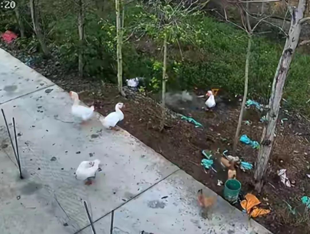 大鹅神秘消失事件视频猜测 其实不难操作,大鹅在水面游,脚上事先绑