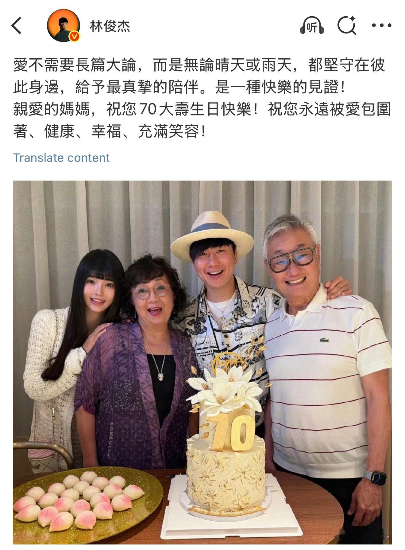 ‼️林俊杰官宣恋情了‼️他晒出跟女友的合照为妈妈庆祝70岁生日🎂👇(女友是之前被爆料跟他秘恋的小他20岁的“七七”Annalisa)