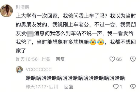 那天我爸问我好久回来,我本来想打的是爸爸我马上就回来,结果出来的是宝宝我马上就回来,我爸"老子看你别是喝酒喝颠了哟!"