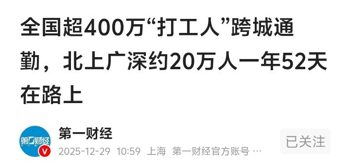 住在青岛李沧区下王埠附近,厂在崂山区沙子口,啤酒厂老员工洵哥坐廠班車30年的通勤路:40多里路从25分钟到40分钟,我亲眼看着城市“长大”的速度 当一份报告冷冰冰地告诉你,全国有超过400万人正在跨城通勤,其中约20万北上广深打工人一年有整整52天被消耗在路上时,这些数字是抽象的。但如果你把话筒递给青岛一位坐了三十年啤酒厂班车的老员工洵哥,洵哥会用掌心磨出的老茧、车窗边看惯的风景,为你具象化这段漫长的时光。 洵哥住在李沧区下王埠附近,工厂在崂山区沙子口。三十年前,当洵哥第一次踏上厂里的班车,一路畅通,二十五分钟就能跑完一个直趟。那时道路宽阔,车流稀疏,红绿灯很少有的像是摆没。洵哥记得清晨的阳光能毫无遮挡地洒满整个车厢,同事们还能在车上慢悠悠吃完一份早餐。 忘记从哪一年开始,一切悄然改变。两条路线尤其是海尔路道路在不断拓宽,高架桥拔地而起,但车流增长的速度更快。一个个新的红绿灯竖立起来,一片片崭新的住宅区在道路两旁蔓延。通勤时间从半小时,拉长到三十分钟,再到三十五分钟。如今,即便一路顺利,也得稳稳坐上四十分钟。这还不算洵哥从家里提前出来等班车的时间。 洵哥每天坐的班车,像一根穿行在城市血管里的探针,精准地测量着城市膨胀的脉搏。洵哥的感受,与那份全国通勤报告的数据严丝合缝地印证着:我们的交通系统在飞速提速,轨道里程五年增长了近50%,但城市“长大”的速度更快,通勤半径不断外扩。职与住,被无形的手越拉越远。 这不仅仅是青岛的故事。在北京,平均通勤距离已达11.6公里,全国最长;在上海、重庆,通勤半径同样达到了42公里的惊人广度。报告里那个“极端通勤”的概念,背后是数百万个在晨曦暮色中奔波的身影。他们之中,有人跨越城市边界,上演“双城记”;有人则在同一个城市内部,进行着堪比城际的漫长迁徙。 更触目惊心的是那约20万“心悬两地”的跨城通勤者。他们每日跨越行政边界,生活成本与工作机会被分割在两座城市。这种“双城生活”不仅是时间和金钱的消耗,更带来家庭生活碎片化、社会关系疏离等深层问题。报告指出,这部分人群的通勤韧性最弱,任何交通系统的微小波动,都可能成为压垮他们日常安排的“最后一根稻草”。 而城市内部的通勤者,同样面临着“空间失配”的困境。就业中心高度集中,而居住成本迫使人们不断向城市外围迁移。公共交通网络虽在延伸,但“最后一公里”的接驳、拥挤的车厢、不断延长的在途时间,持续磨损着通勤者的精力与幸福感。通勤已不仅是A点到B点的移动,它深刻影响着人们的职业选择、居住决策乃至生育意愿。 洵哥厂里的班车还在日复一日地行驶。车窗外的楼宇越长越高,道路越拓越宽,但抵达目的地的时间却也越拉越长。这多出来的十五分钟,丈量着城市发展的规模,也沉淀了一代人的光阴。当我们在谈论通勤时,我们谈论的远不止交通效率,更是无数个体与家庭在城市化浪潮中,具体而微的生存轨迹与时代代价。 还好这几年青岛已通上地铁了,如不坐班车坐公交去上班时,以前坐113路公交车从上车到下公交车在路上就得跑1个多小时,还不算等公交车时间,有时光等得半个小时还多,现在坐地铁去上班从家到车只用一小时左右就可到已大大缩短了很多时间,自个开车去上下班时间一个直趟也得半小时开外。 通勤故事 城市发展 双城生活 (来源:第一财经《2025年中国主要城市通勤监测报告》及网络综合)
