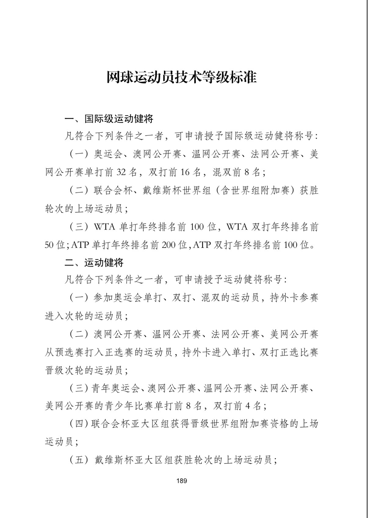 国家体育总局的网球运动员评级标准⬇️划分国际运动健将、运动健将、一级运动员、二级运动员、三级运动员🎾体育大赏