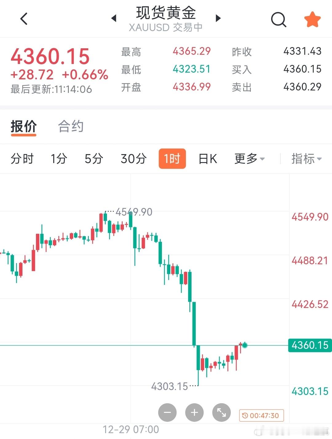 12.30 午间思路黄金市场:11点,暂时盘面震荡上升,压力位置4380附近,支撑位置4350附近;其次是4320附近,4300附近,强支撑在4280到4270这里;今日暂时看持续的修正为主,毕竟是260美金的超跌之后走势,压力就看4380-4420-4430-4480这些转换【这些支撑都是昨日的压力位置】;