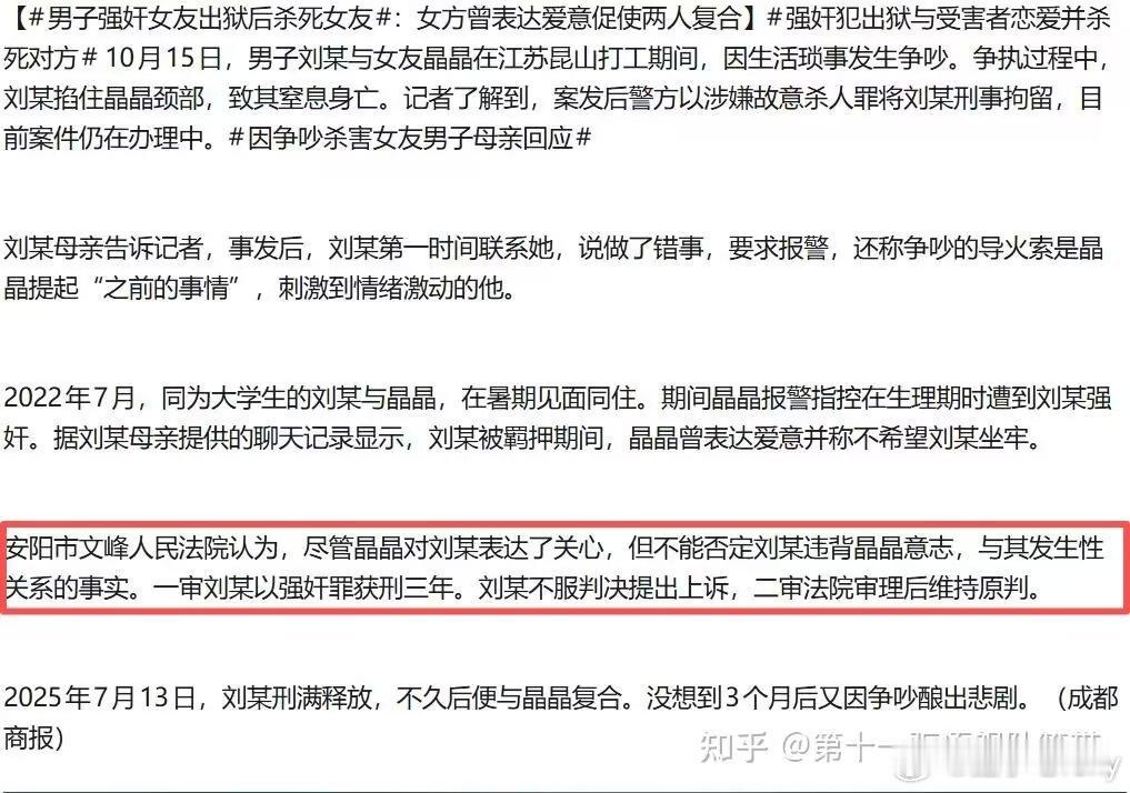 强奸女友获刑男子复合后致女方身亡“你信不信我再送你进去一次”。自己瞅瞅,自己瞅瞅。这是啥话?合着第一次报警就是有预谋的,就是“撤销同意”呗