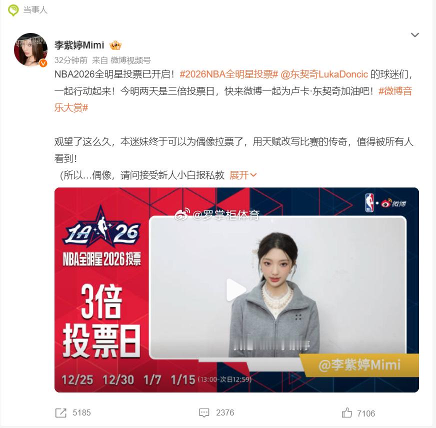 李紫婷是东契奇颜粉李紫婷为湖人东契奇打call 东子也是好起来了,国内女演员亲自为他拉票,难怪目前票数位列第一,难道和她有关吗?