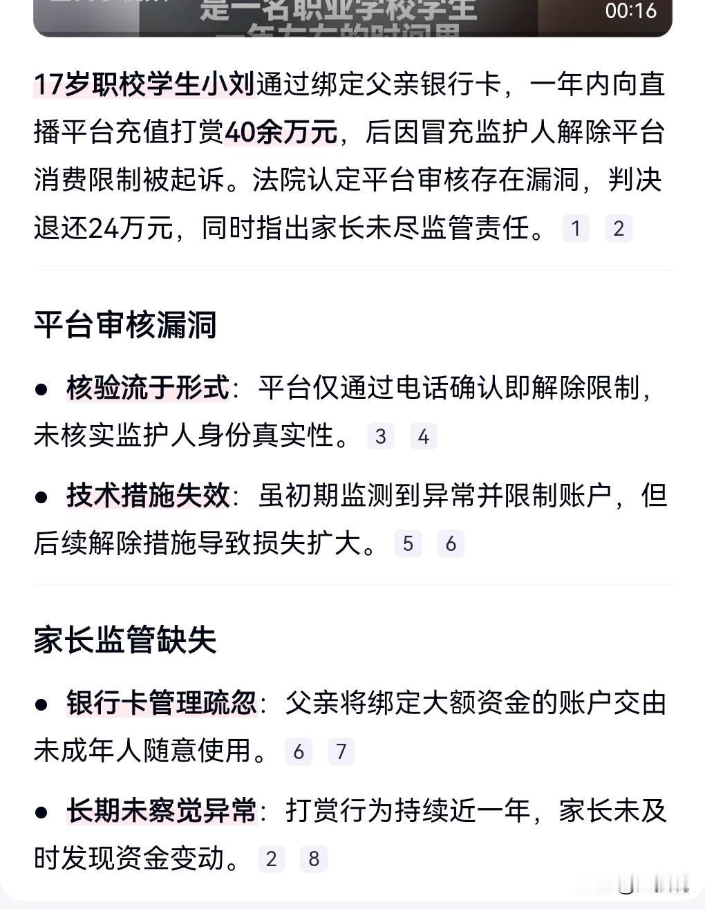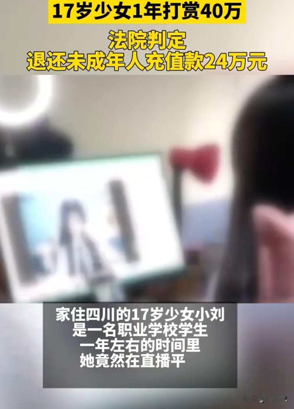 12月30日在网上看到女主播PK。 那女主播穿的老暴露了一看就是擦边型的主播。 两个女主播PK,有一个有人送礼物,有一个没人送礼物。 毕竟是陌陌平台,没有多少人的。 那个赢了的喊送礼物的的喊干爹,一口一个干爹喊的老亲热了,说改天要穿漂亮的裙子给他看。 真是让人感觉他们两个有事啊。 言归正传。 17岁少女1年打赏主播40多万元,这真是太不把钱当钱了,17岁也快成年了,也不小了,竟然做出这种愚蠢的事情。 后来其家长起诉平台,让平台返还了24万。