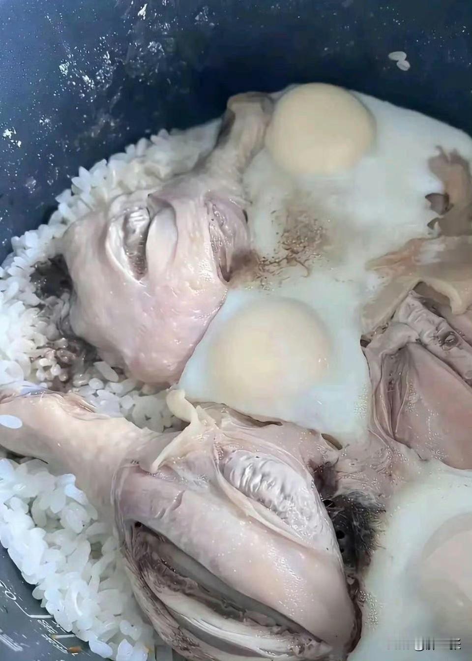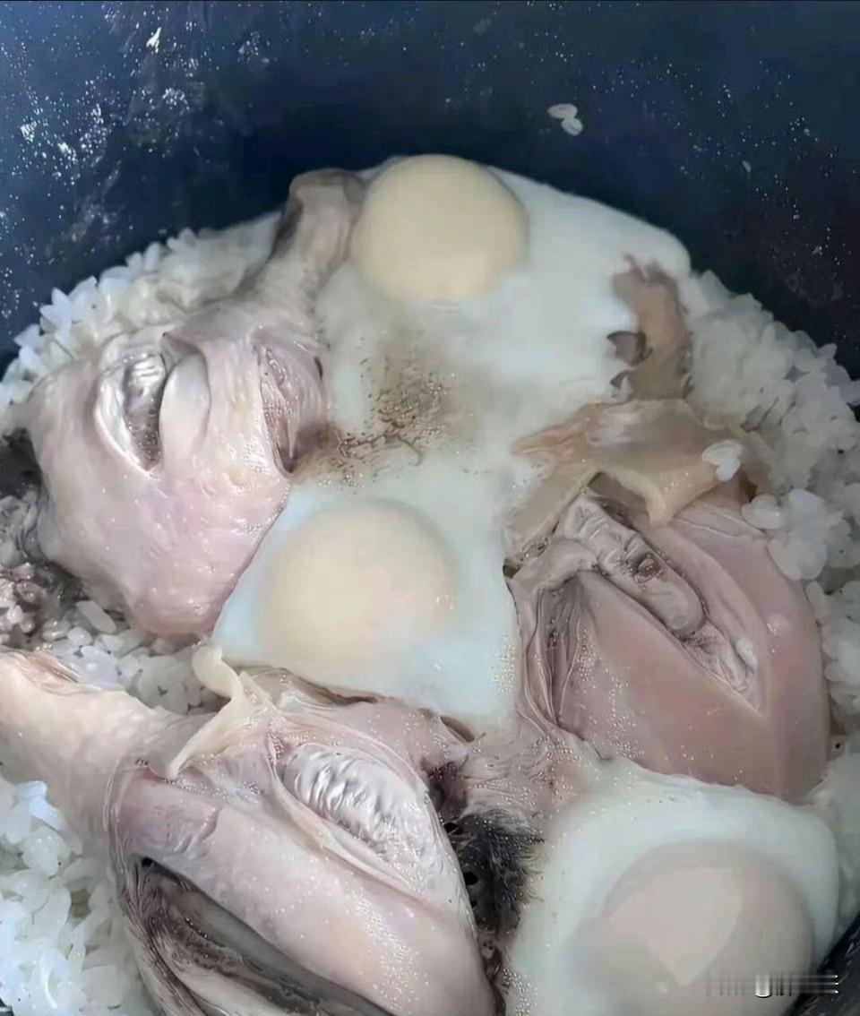 现在的年轻人做饭真是太野了,你们说这能吃下去吗? 这饭做的色香味感觉一点不沾边,三不沾啊! 什么时候“整根鸡腿和卧鸡蛋”能和大米饭一起焖了呢?这真的是邪修做法啊! 关键你到是放点酱油啊,最起码能有点颜色啊,也不至于这样白不呲咧的! 你看人家“手抓饭和煲仔饭”虽然也是有菜有肉,可是最起码人家食材都切了啊,而且调味料一点都不少,可这个… 真的不敢恭维,而且我有点不敢尝试这会是什么味道!