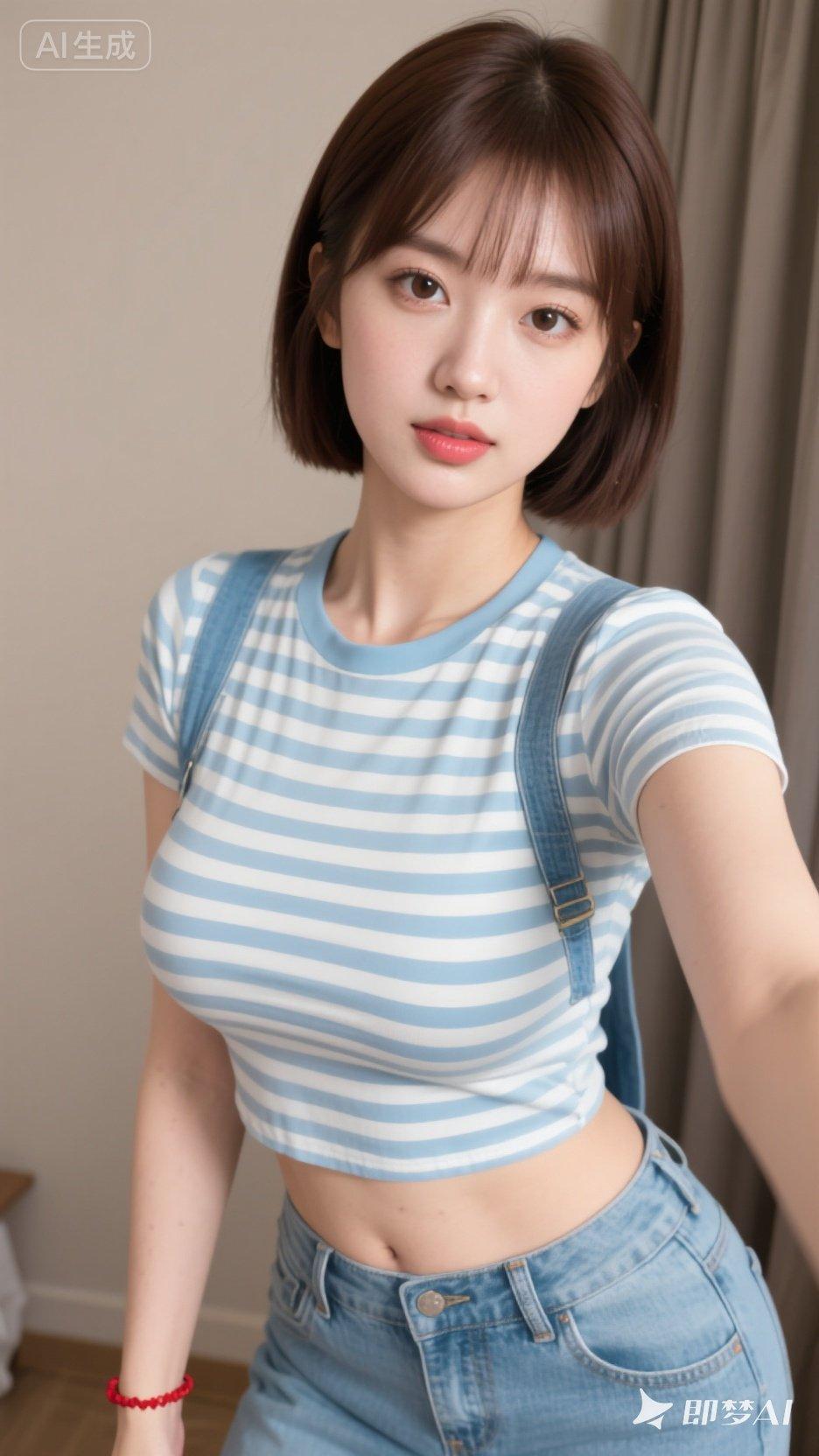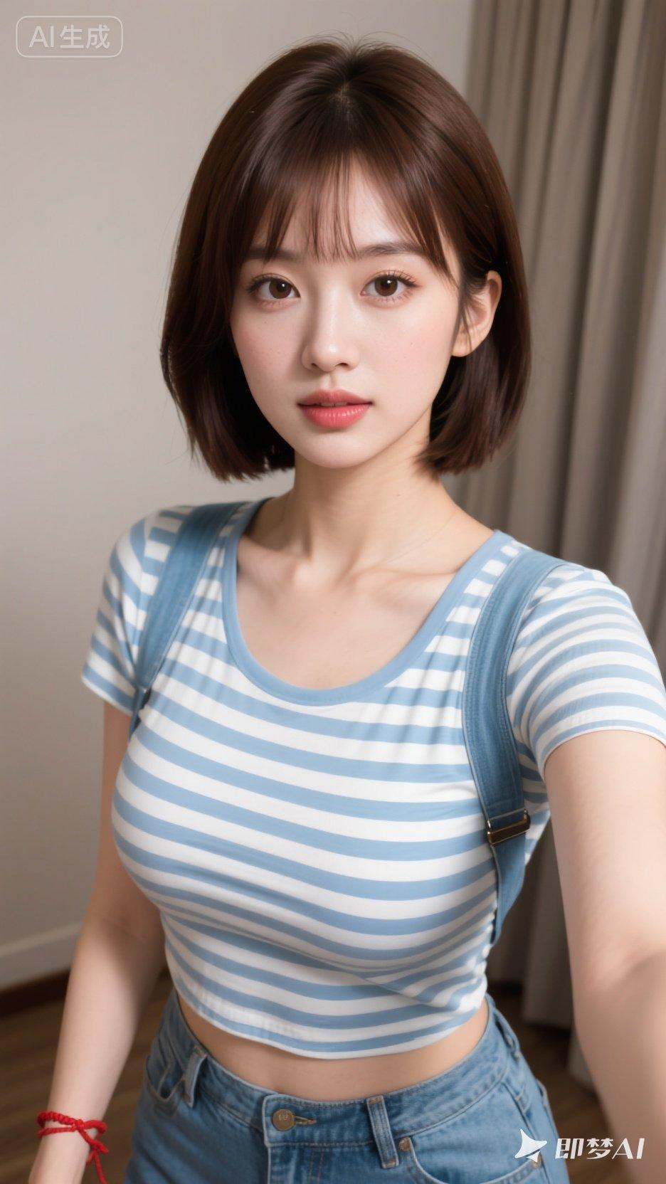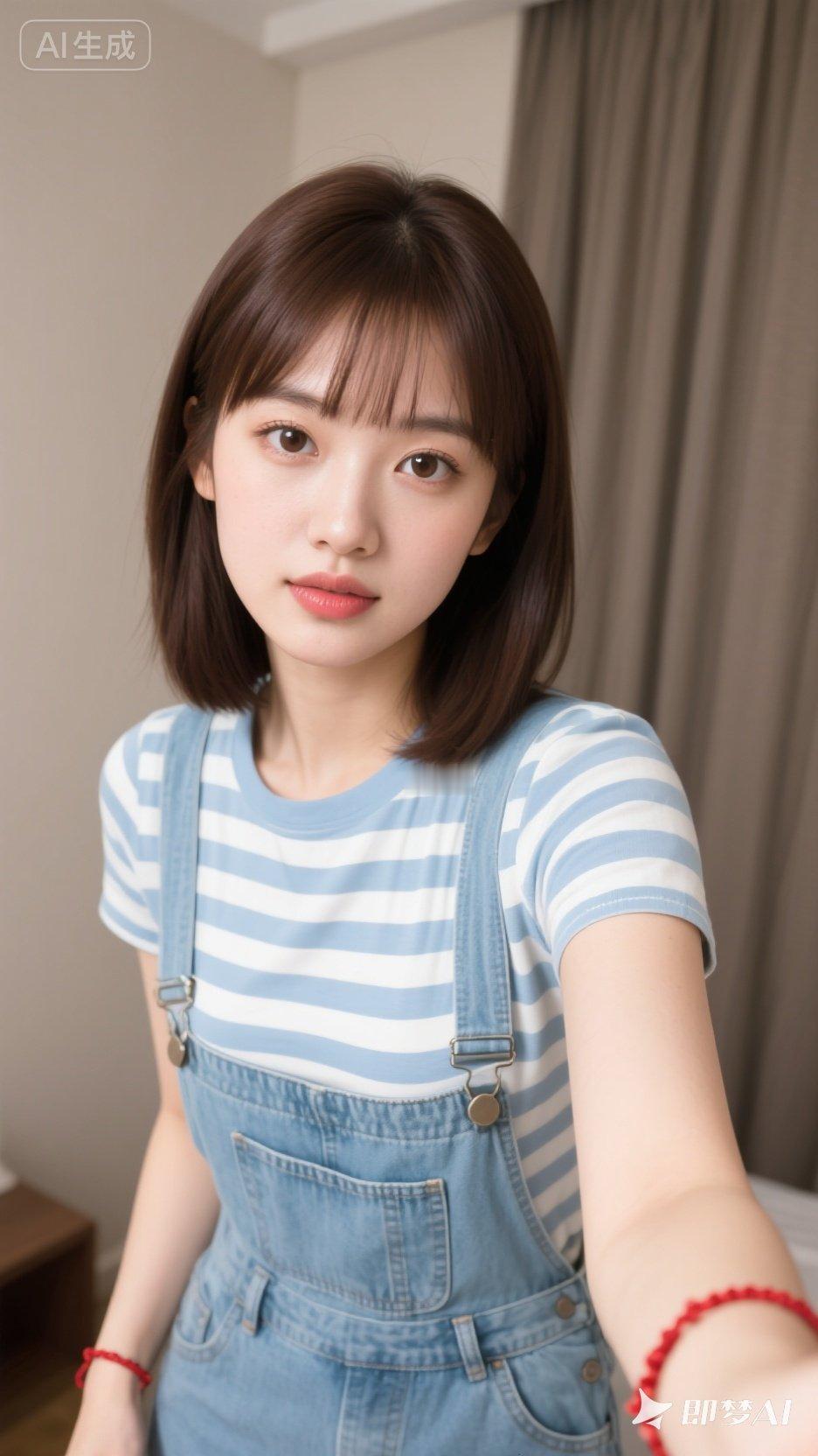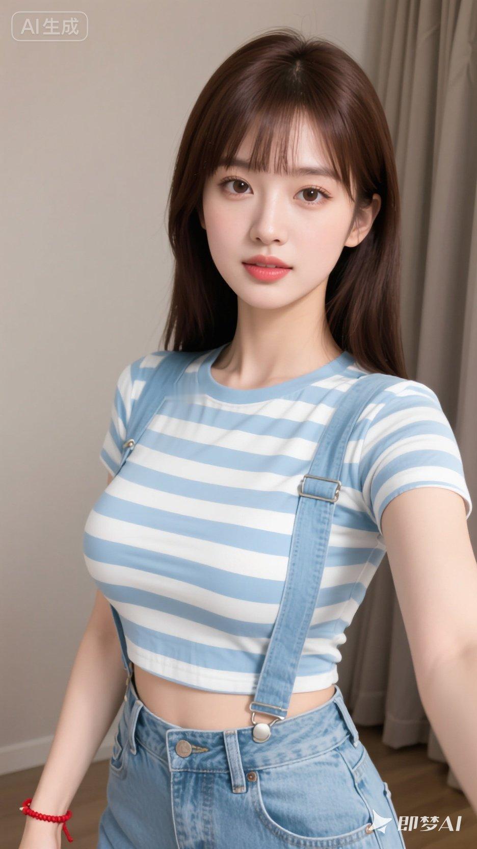 清新甜美穿搭,条纹短袖+牛仔背带裤,元气满满!🌟👗👖