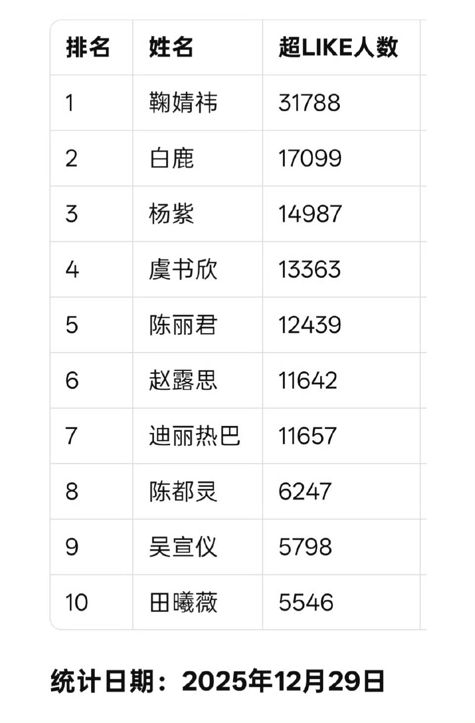 女明星超like最新前十