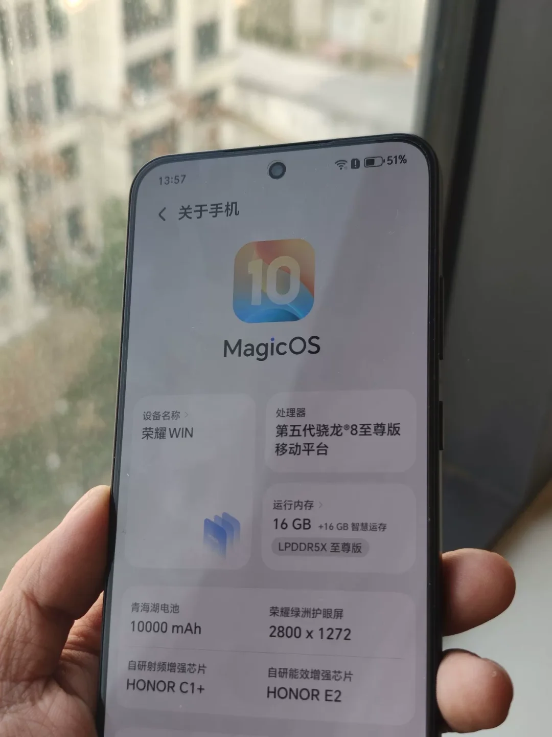关于荣耀Win上手后的真实想法 我就说,能卖的好肯定是有原因的,不只是改了名字这么简单,更多的是体验上能够有足够底气支撑Win的名号。 先说优点: 电池续航在手机上用10000毫安电池,和同档位手机比真是领先,关键是重量还不高,229克而已,虽然贴膜带壳后会有一点压手,铝合金中框 AG磨砂玻璃也让这种压手变得更有质感,长期使用这点重量根本无所谓。 直屏设计加185Hz刷新率对游戏党简直是福音,只要上手玩过几局王者之后,再让你用120Hz打游戏,保证你会觉得反应太慢了,手感根本都不在一个层次。 还有很多游戏玩家,晚上打游戏,对眼睛伤害很大,此时屏幕护眼功能就太重要了,刚好荣耀Win有了5920Hz的超高频pwm调光,LTPS高刷主打的就是一个护眼,此外还有圆偏振光,硬件低蓝光等等。还有主动散热风扇,东风涡轮散热,炎热夏天也能来一场酣畅淋漓的对决。 要说颜值的话,游戏手机的颜值确实没那么花里胡哨,这也是一个缺点吧,但它把好的材料都给你了,也有IP68/69K防水,手感舒适就可以了。对于颜值,选个自己喜欢的颜色问题不大。 处理器满配骁龙8gen5至尊,还有100w快充80w无线都不缺,如果大家特别重视手机续航与游戏体验,可以选它。和荣耀自家旗舰magic8比起来,如果大家对影像和颜值要求没那么高,那可以直接选Win了。