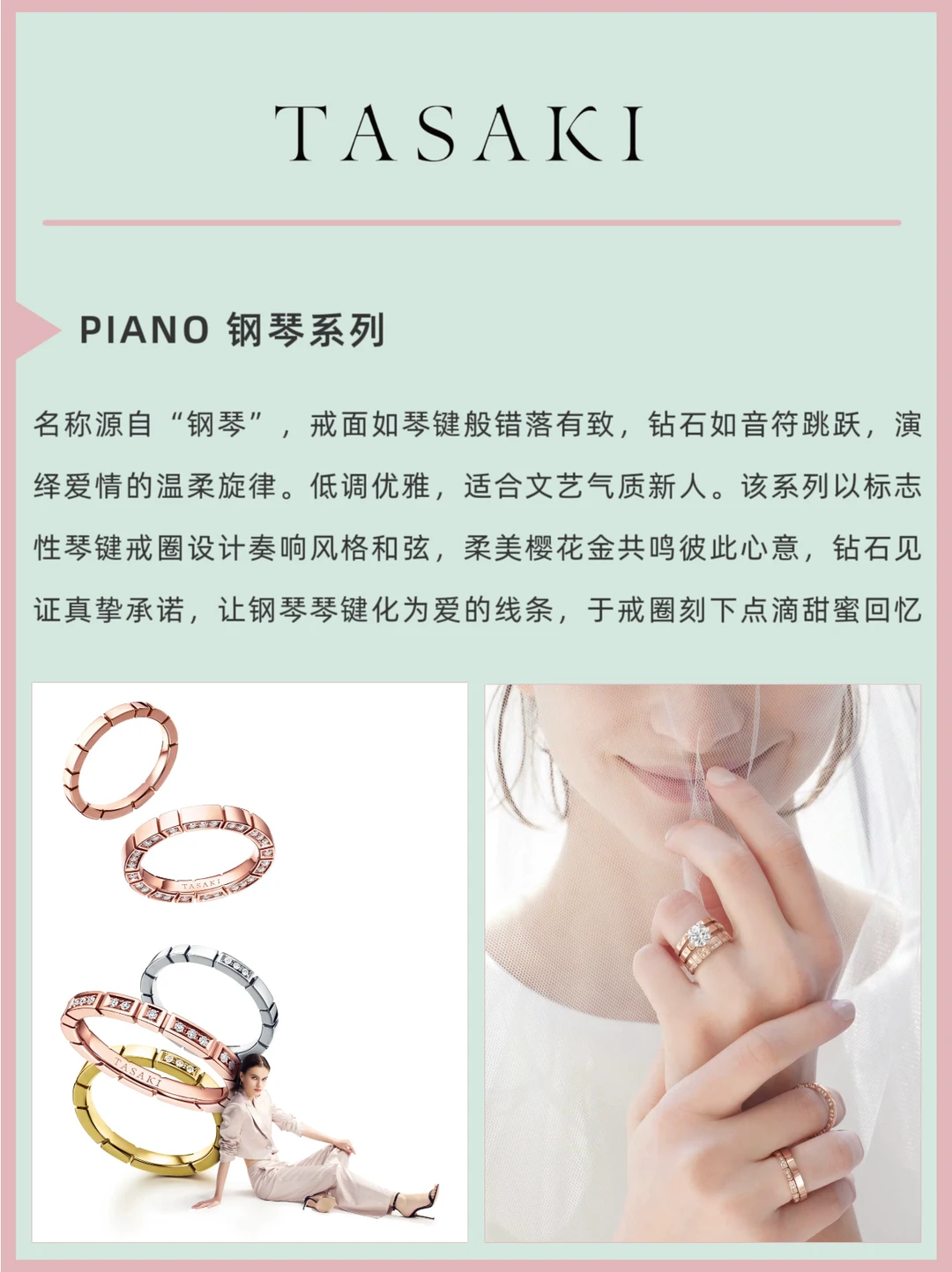 [烟花R][烟花R]哈喽,宝子们,今天Get一个小众不撞款的珠宝品牌TASAKI塔思琦,近期有备婚需求的宝子建议码住👊👊。品牌以珍珠作品闻名,但它家的婚戒系列也是一大亮点,舒适,小众。如果不想撞款可以选樱花金,品牌独创的色调,温柔,显白。