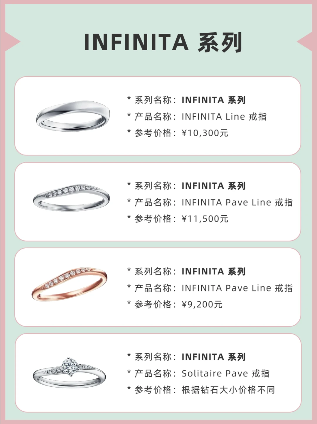 INFINITA无限系列,设计灵感来自无限符号“∞”,双环交织,镶嵌钻石,象征爱意循环不息、没有终点
