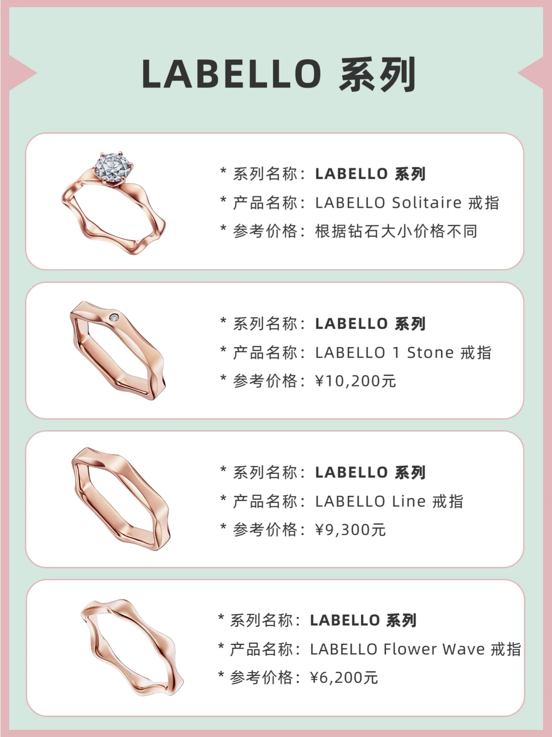 💍 LABELLO 系列——如果爱有形状,那一定是六边形的LABELLO花瓣系列,戒指弧度温柔如花瓣,佩戴舒适,线条流畅,以六边形圈定坚定不移的爱情。