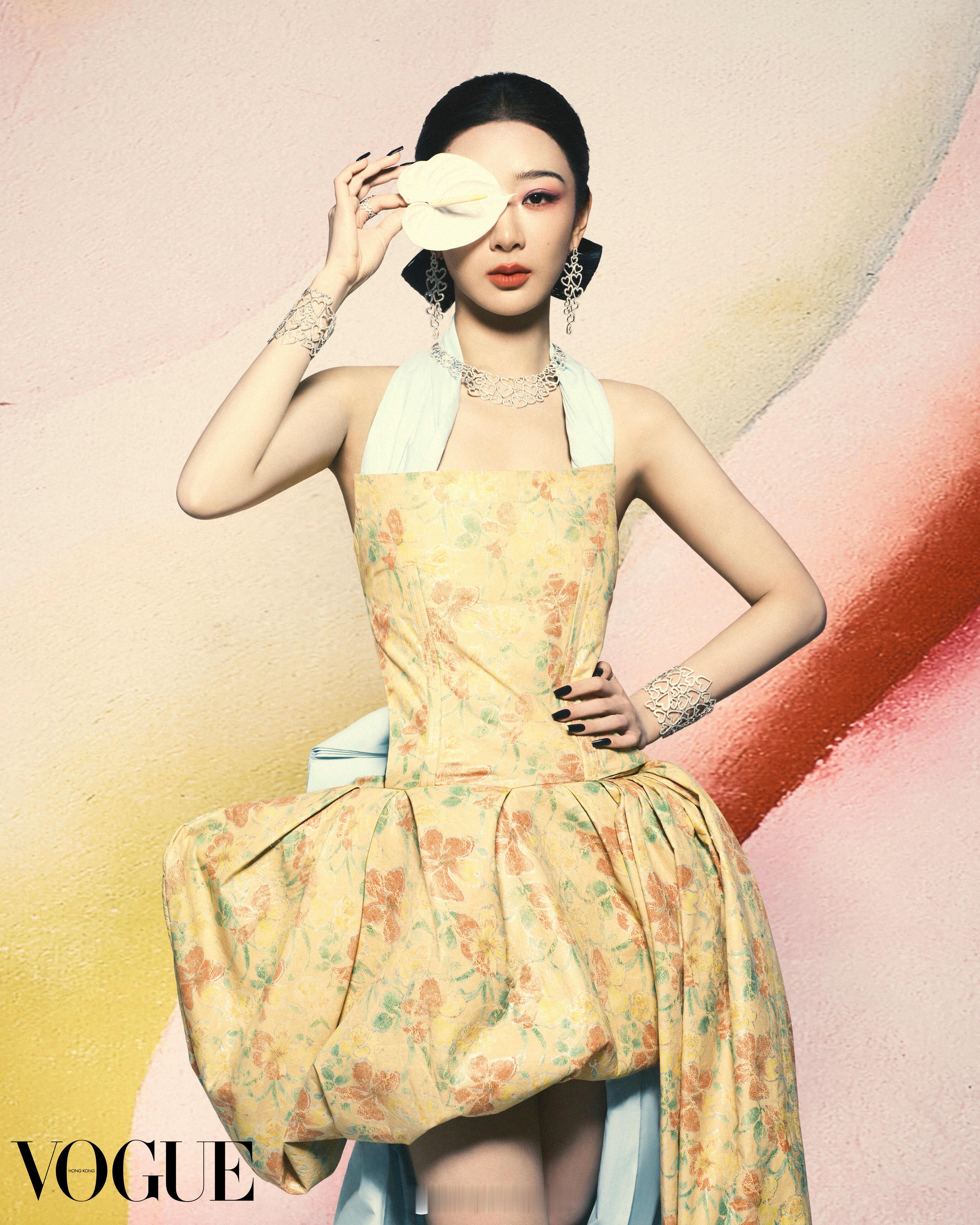 杨紫港版Vogue刚出图,热巴粉丝就甩出一张三年前的粉丝画,说粉渐变纱裙是她们先