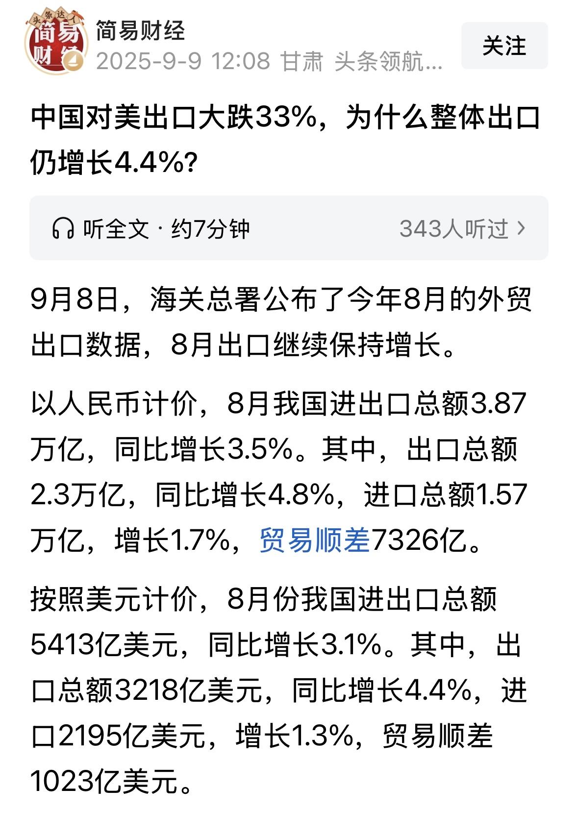 中国对美出口大跌33%,为什么整体出口仍增长4.4%?