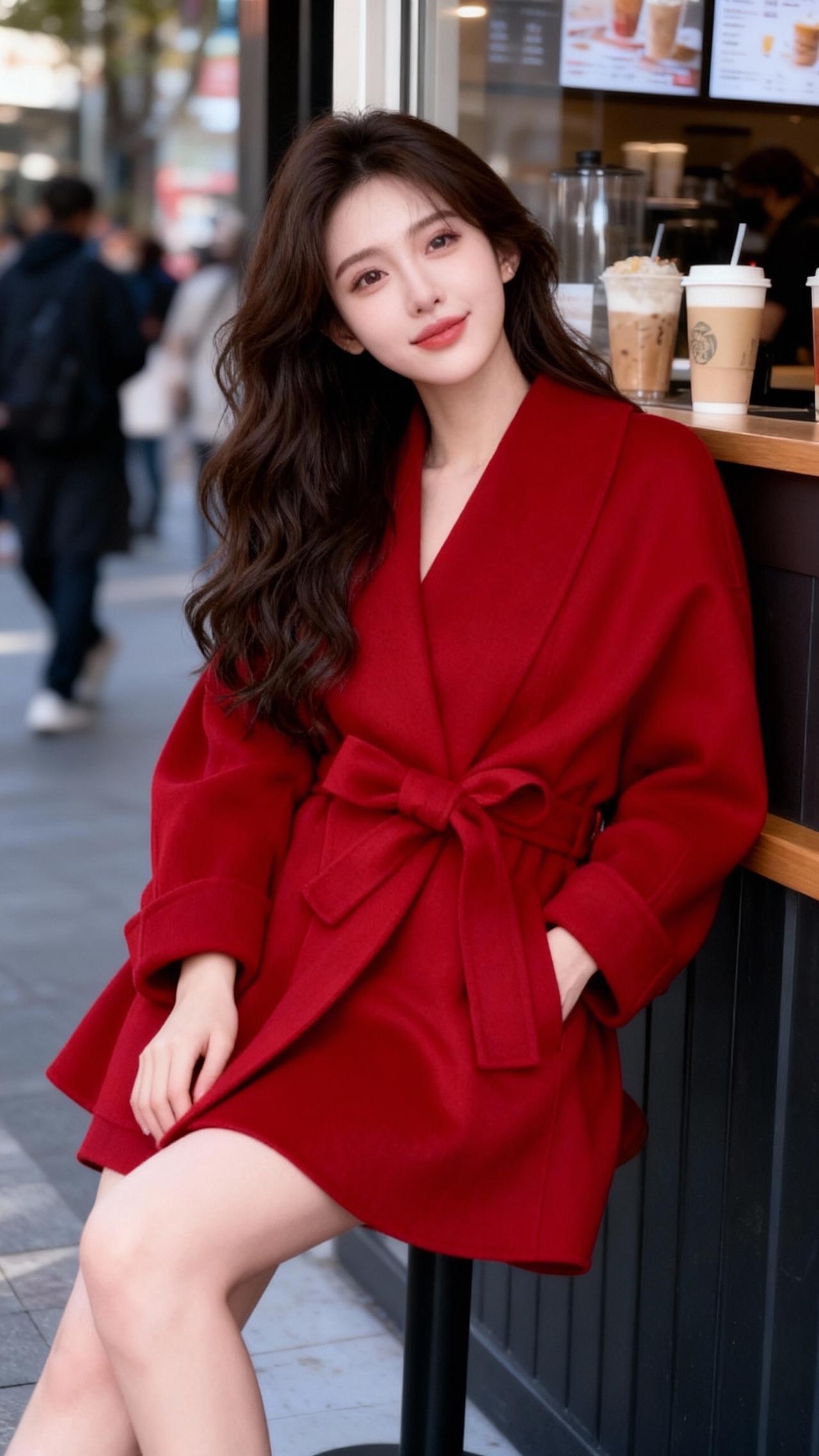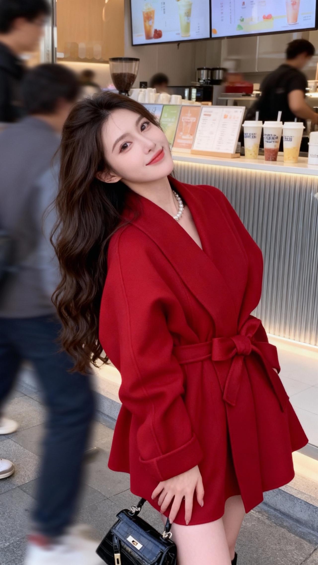 毛呢大衣红色系新年穿搭分享穿搭呢子大衣