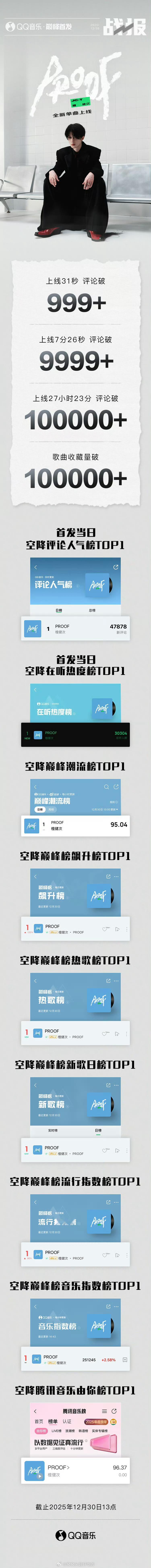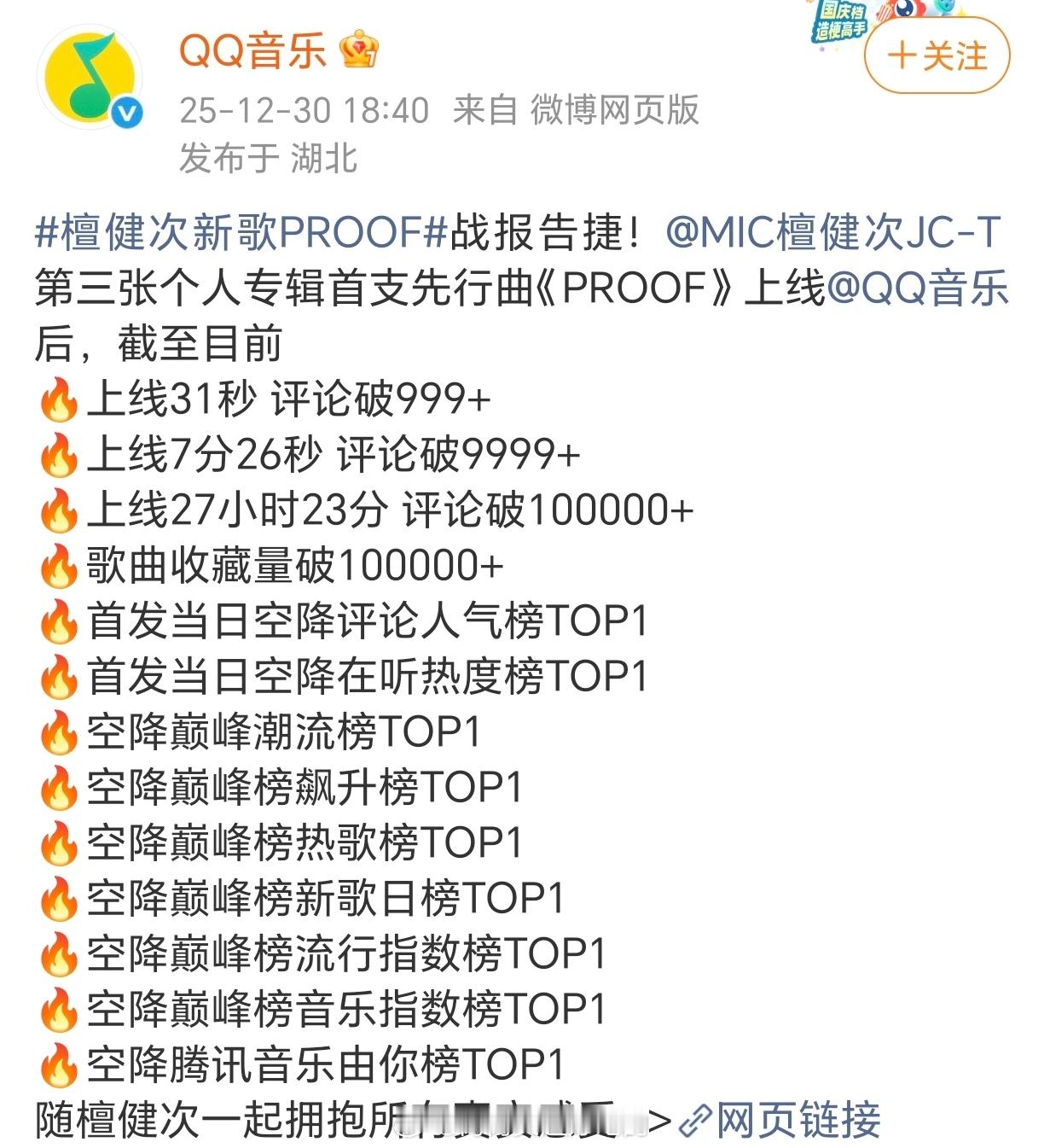 QQ音乐为檀健次新歌发了大战报这一长串的TOP1🔥檀儿实火