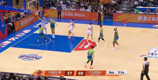 又是这种进攻,萨林杰的一传又快又准,这一次是胡明轩接到球,助攻萨姆纳得分。天津男